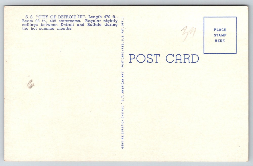 SS City of Detroit III Great Lakes Cruise Ship Vintage Postcard Z13