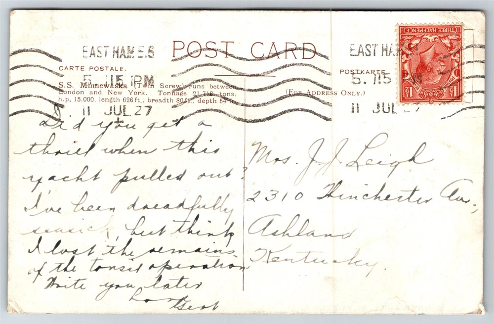 SS Minnewaska Atlantic Transport Line Cruise Ship London New York Postcard L7 Thank you for visiting! This is a standard size postcard, 3.5" X 5.5". In stock, usually ships within 24 hours of your purchase. Please ask questions if you are unsure about anything. Our goal is for your complete satisfaction with the postcard and your experience. Check all my other listings in my store. RETIREDWITHBOOKS Powered by SixBit's eCommerce Solution