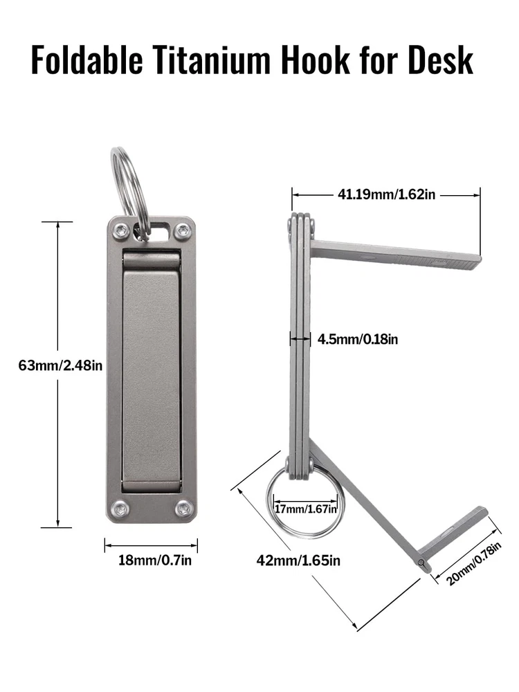 ST5 Titanium Purse Hook for Table – Foldable Bag Hanger with Anti-Slip Arm – Portable Handbag Holder for Dining, Office, and Travel 1️⃣ Strong & Stylish Bag Hook for Tables: Made from lightweight titanium, this purse hook holds your handbag securely at any table edge while keeping it clean and safe. 2️⃣ No More Bags on Dirty Floors: Keep your purse, tote, or backpack off restaurant and cafe floors with this simple yet effective folding table hook. 3️⃣ Anti-Slip Arm for Secure Grip: Designed with anti-slip points to ensure your bag stays in place without slipping or sliding. 4️⃣ Folds Flat – Easy to Carry: Compact and foldable, easily clip this portable hook onto your handbag strap or drop it into your purse for everyday convenience. 5️⃣ Ideal for Dining, Office, and Travel: Perfect for use in restaurants, cafes, offices, or while traveling – keeps your essentials elevated and within reach.