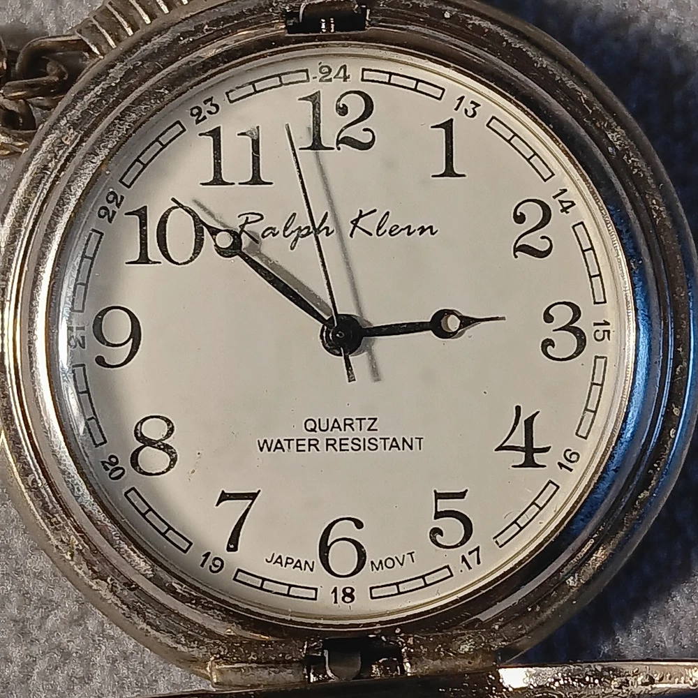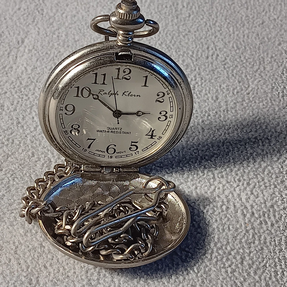 This antique pocket watch by Ralph Klern features a mechanical manual movement and a full hunter closure, making it a stylish and sophisticated accessory for any unisex adult. The base metal case in silver and yellow gold tones gives it a classic and timeless look, perfect for formal events or everyday wear. Made in the USA with a vintage appeal, this pocket watch is a unique and charming piece that would make a great addition to any collection or as a functional timepiece.