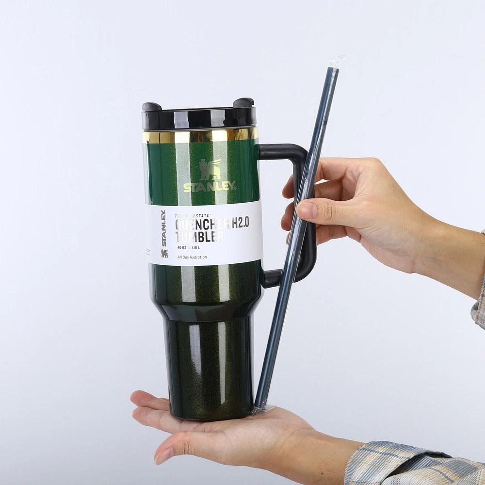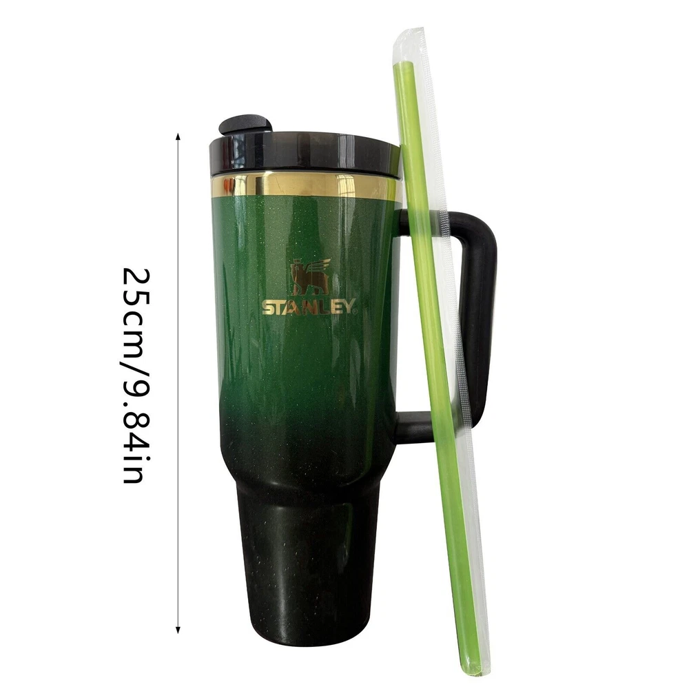 STANIEY X TARGET EIphaba 40OZ H2.0 FlowState Tumbler Wicked Dark Green/Pink Features: 304 stainless steel cup .Christmas drinking cup, everyone who receives this cute cup for Christmas will like it The cup mouth is smooth and unique, the inner and outer materials are 304 stainless steel, a cup is about 540g, and it is about 720g with a cowhide Long-lasting heat preservation, the cup vacuum will transfer heat, sun and wear resistance, a must-have for home travel No need to test the temperature with your mouth to avoid burns. 360° rotation, no need to worry about leakage, good sealing Suitable for easy travel, outdoor sports, beaches, schools, picnics, hot yoga, hiking, camping, cycling, running, walking, gym, fitness, etc. Product Description: Material: Stainless steel Color: Dark Green/Pink Includes: 1X Cup (Please allow 1-3mm error due to manual measurement. Make sure you do not mind before ordering.) Introducing the Stanley x Target Elphaba 40OZ H2.0 FlowState Tumbler, a perfect addition to your collection. This three-piece tumbler set is made of stainless steel, steel, and BPA-free plastic, and comes with a drink-through lid, making it perfect for both hot and cold beverages. With a capacity of 40OZ, it keeps your drinks cold for up to 12 hours and hot for up to 8 hours. The tumbler is machine washable up to 85°F, and is suitable for recycling. It also features a handle, straw, and is insulated, making it perfect for any occasion. The tumbler is designed with a solid color pattern in green, and is adorned with the iconic Elphaba character from the popular cartoon series. This tumbler set is a must-have for sports enthusiasts, teens, boys, girls, and anyone who loves hot or cold beverages.