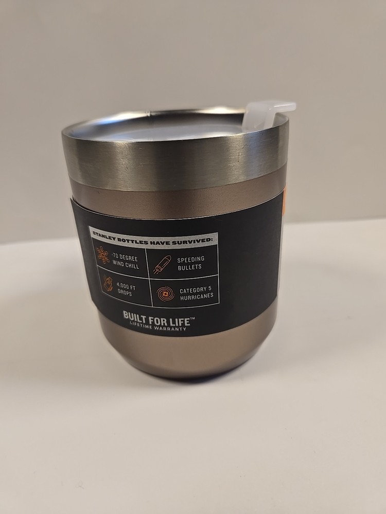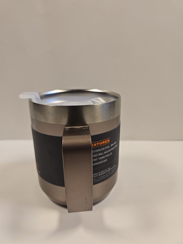 The STANLEY LEGENDARY CAMP MUG CUP is a two-piece stainless steel insulated coffee mug with a solid pale purple rose color. It features a drink-through lid, making it perfect for both hot and cold beverages. This 12 ounce mug is ideal for camping, hiking, or any outdoor activities, with a lifetime manufacturer warranty for added durability. With its insulated design and handle, this mug is a reliable choice for teens and adults on-the-go.