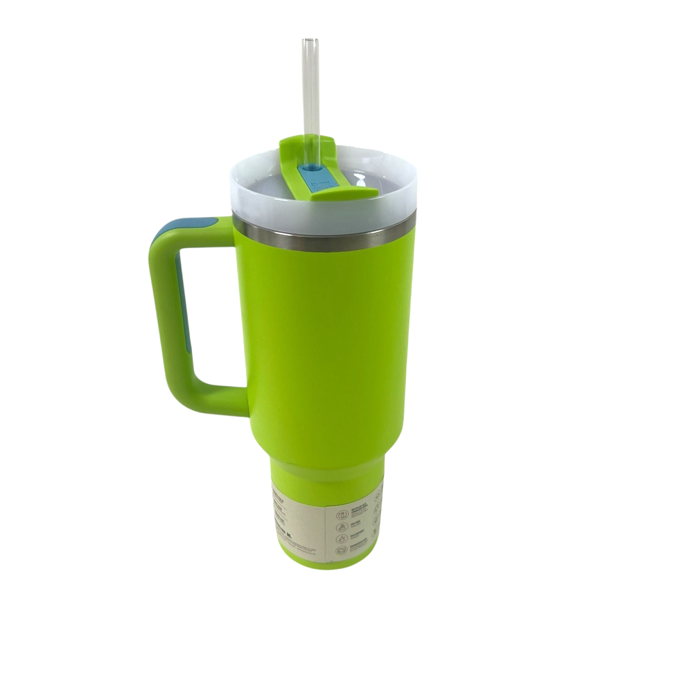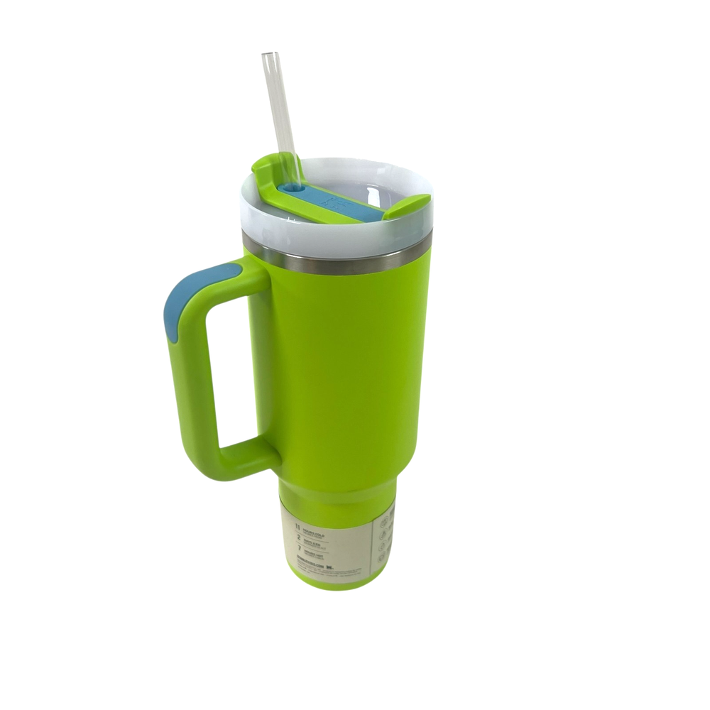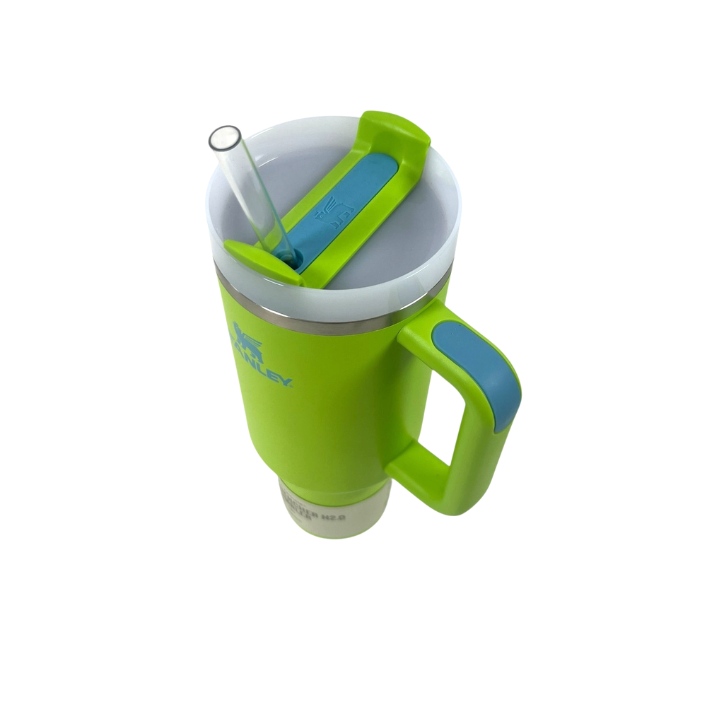 The STANLEY Quencher H2.0 Tumbler with Handle and Straw is a reusable water bottle with a 40 oz capacity, perfect for both home and travel use. Made of insulated stainless steel, this tumbler features a screw-on lid with a convenient handle and straw for easy sipping on the go. With a lifetime manufacturer warranty and a vibrant lime green color, this durable and stylish tumbler is your ideal choice for staying hydrated in style.