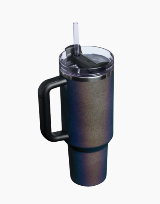 This is a confirmed pre-order. Will within one postal service day of receipt. Expected receipt date 12/9 - 12/12. Introducing the STANLEY THE MIDNIGHT GLITZ QUENCHER H2.0 FLOWSTATE TUMBLER, with a 40 oz capacity. This tumbler is perfect for keeping your hot or cold beverages at the desired temperature for up to 7 and 11 hours, respectively. The Midnight Glitz pattern adds a touch of sparkle to your drink, and the twist lid and straw make sipping on your favorite beverage easy and convenient. Made with stainless steel and BPA-free plastic, this tumbler is dishwasher safe and comes with a lifetime manufacturer warranty. Its features include insulation, a secure lid, and a straw for easy sipping. This tumbler is ideal for teens, adults, kids, and everyone in between. Its height is 12.03 inches and it weighs 1.18 pounds. Get your hands on the STANLEY THE MIDNIGHT GLITZ QUENCHER H2.0 FLOWSTATE TUMBLER today and enjoy your beverage in style and comfort.