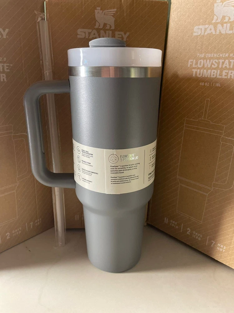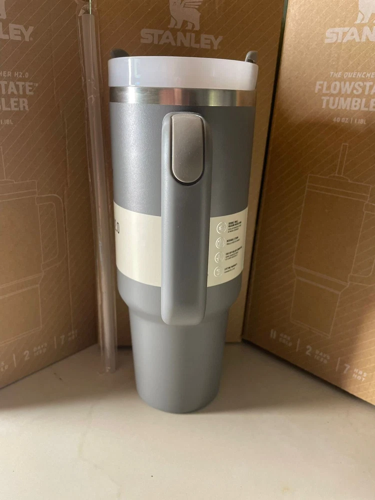 The Stanley quencher h2.0 40oz Tumbler Made of stainless steel and BPA-free plastic, this tumbler is suitable for both hot and cold beverages This comes with no lid!! And has a small mark on the front of the tumbler that you can see in the pictures