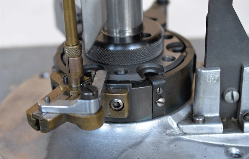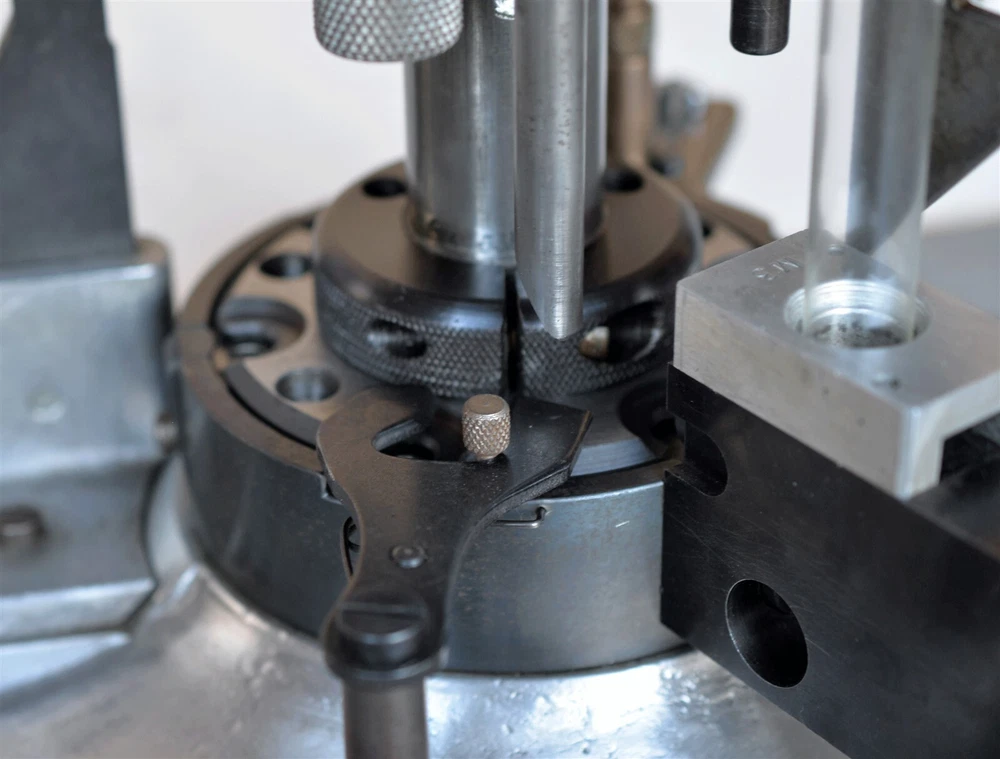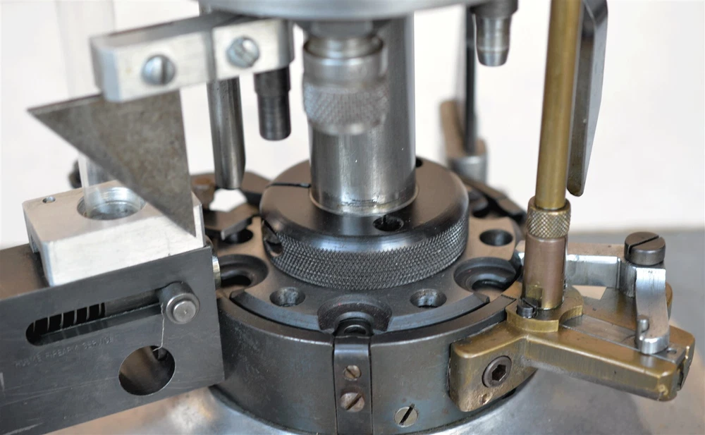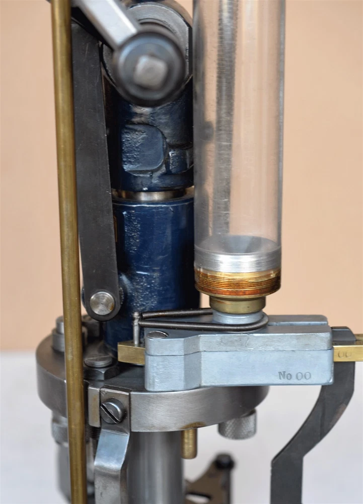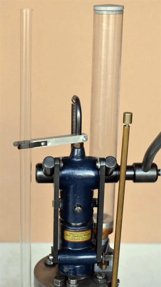 Star Universal manual indexing progressive reloading press with 9mm Luger dies with carbide sizer, expander stem, seater, and taper crimp die. Size 00 powder slide housing. Size 00 powder bar (5.0 grains W231), Hulme case feeder with (3) 17" feed tubes, and (2) primer pick-up tubes. Used in good working condition. Shipping costs listed are for USA Zip Codes only. Others pay actual shipping costs. Powered by SixBit's eCommerce Solution