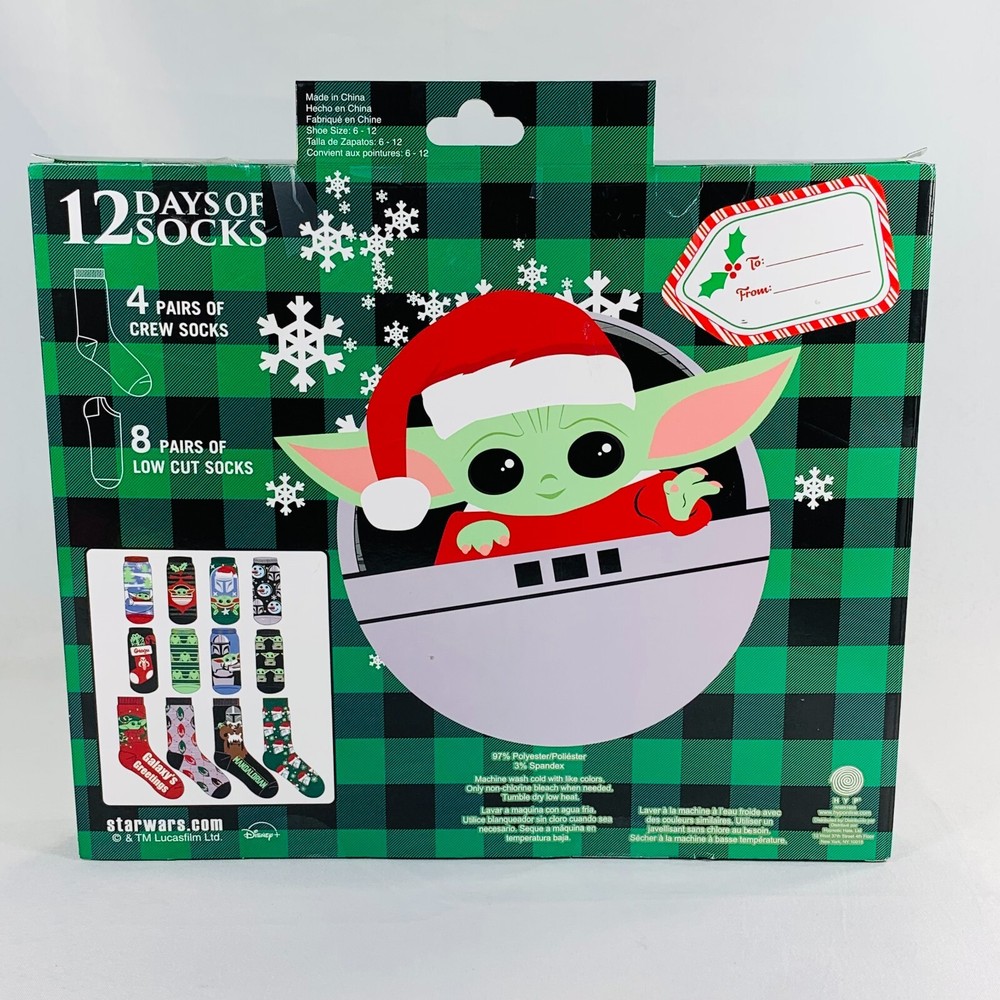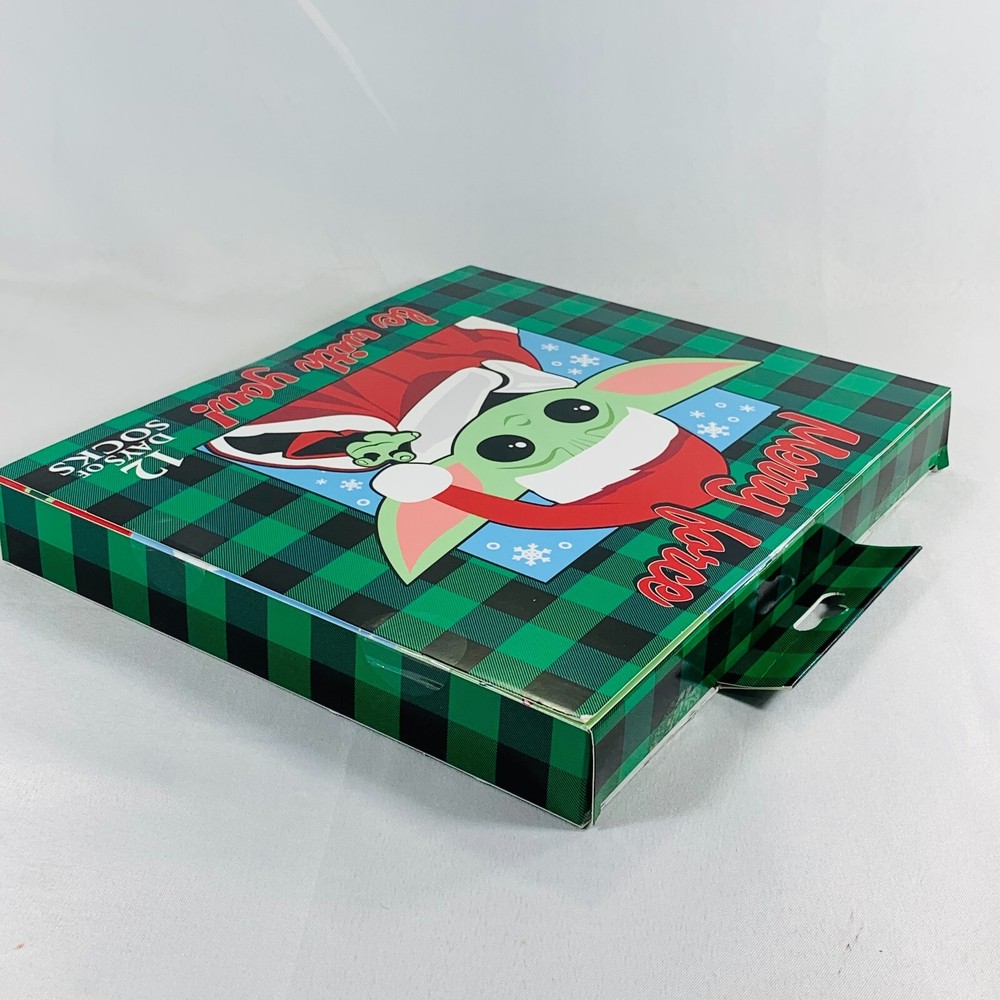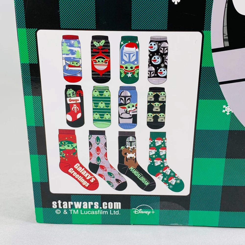 Add some intergalactic fun to your sock collection with these STAR WARS The Mandalorian Grogu Baby Yoda 12 Days of Socks. Featuring a colorful design of Yoda, the Mandalorian, and Baby Yoda, these novelty socks are perfect for casual occasions and can be worn by both men and women. The socks are made by Hyp, a brand known for its quality and lightweight materials, making them suitable for all seasons. This pack of 12 pairs of socks is over the calf in length and comes in a unisex adult size 6-12. They are perfect for fans of the movie and make a great gift for any occasion. Made in China, these socks are a must-have for any Star Wars enthusiast. Any imperfections are shown in photos. We can do combined shipping! See what else you'd like from our store! đź’™Retro and Beyond