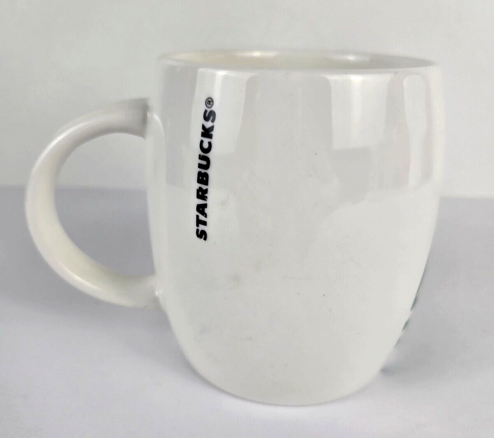 STARBUCKS 2010 Mermaid Siren Logo White Ceramic Barrel Coffee Mug 14 oz. The product is a Starbucks 2010 Mermaid Siren Logo White Ceramic Barrel Coffee Mug, holding 14 oz. of coffee or tea. This collectible advertising piece features the iconic Starbucks mermaid siren logo, adding a unique and nostalgic touch to your morning cup of brew. It is 4 inches in height and 3.25 inches in width. It is also microwave and dishwasher safe. Made of ceramic and originating from China, this original piece is a must-have for any Starbucks enthusiast or collector of coffee memorabilia. We carefully pack each item to prevent breakage. We only charge what the shipper charges and cannot control the shipping costs. We do not accept returns/refunds unless item is not as described per eBay policy or the item arrives damaged or broken beyond anything noted in the condition field or pictures. If you have any questions about any of our listed items, feel free to email us.