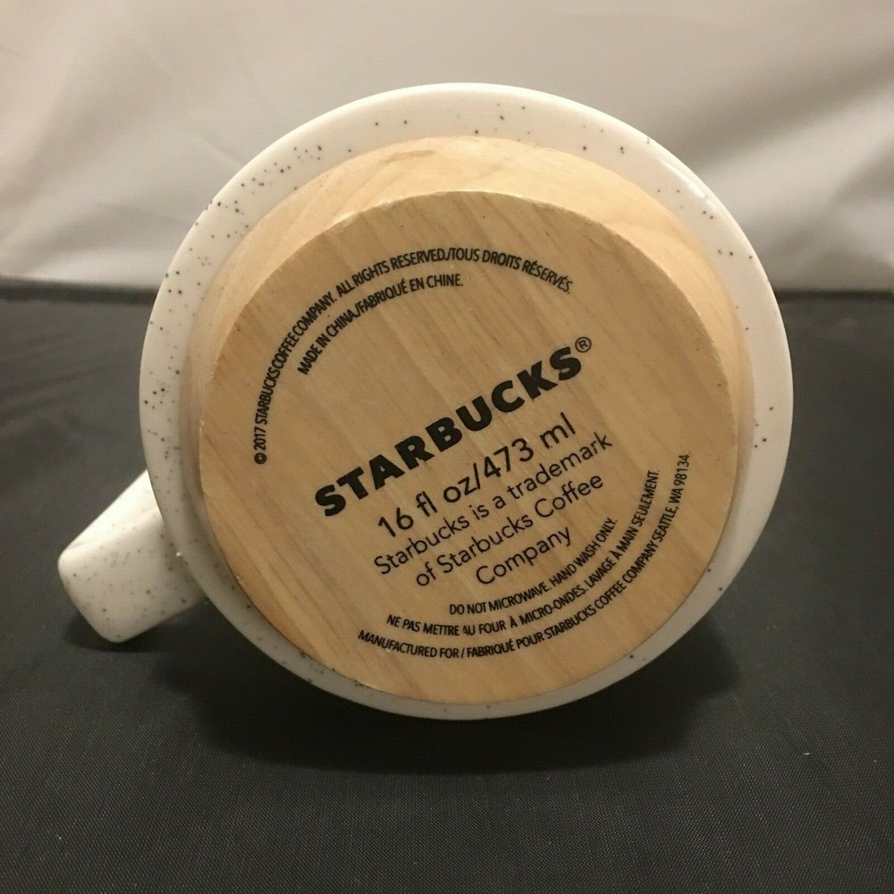 This Starbucks mug from 2017 is a unique addition to any collection. The speckled white design is debossed with a wooden texture, giving it a natural and rustic feel. It is a collectible item that showcases the brand's advertising with its featured refinements, including "Starbucks" and "Collectable Mugs." This original mug is perfect for coffee and tea lovers alike and has a coolness factor that sets it apart from other mugs, a great addition to any collection. This mug is from a private collection and has been safely stored in a glass display cabinet. It is in brand new condition and has not been used. It does not include original stickers, paperwork, or packaging.