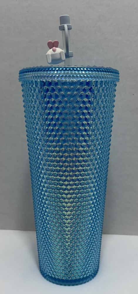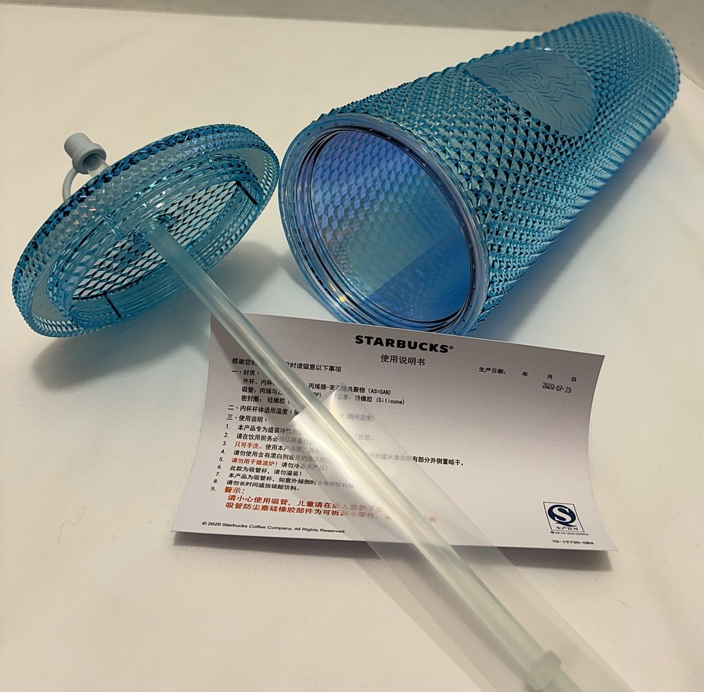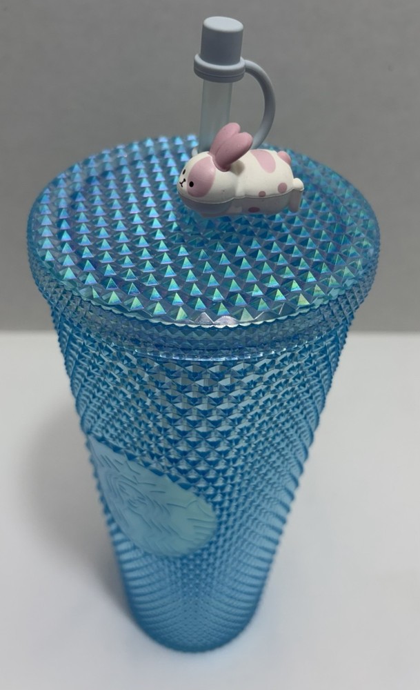 The product is a Starbucks 2020 venti tumbler with a iridescent blue with bunny straw topper. This tumbler was released in China. This collectible advertising item is part of the coffee and tea theme, showcasing the unique design and branding of Starbucks. Perfect for coffee and tea enthusiasts looking to add a special touch to their tumbler. This tumbler is new and has never been used.