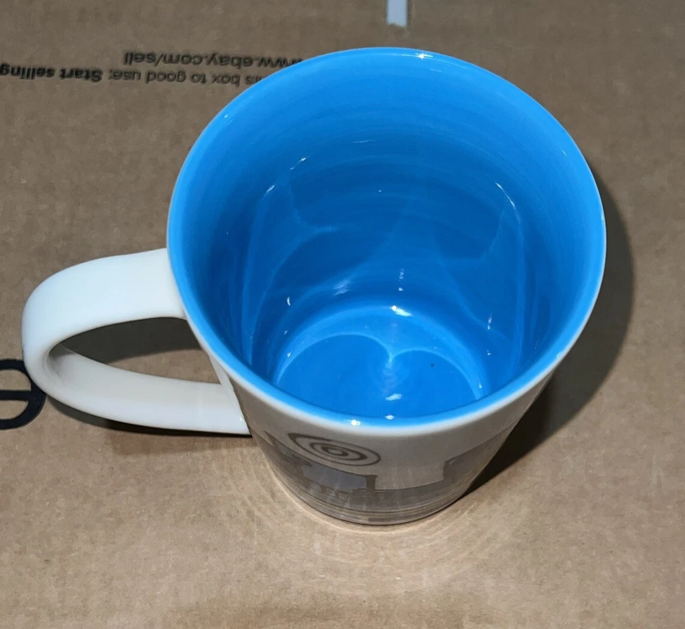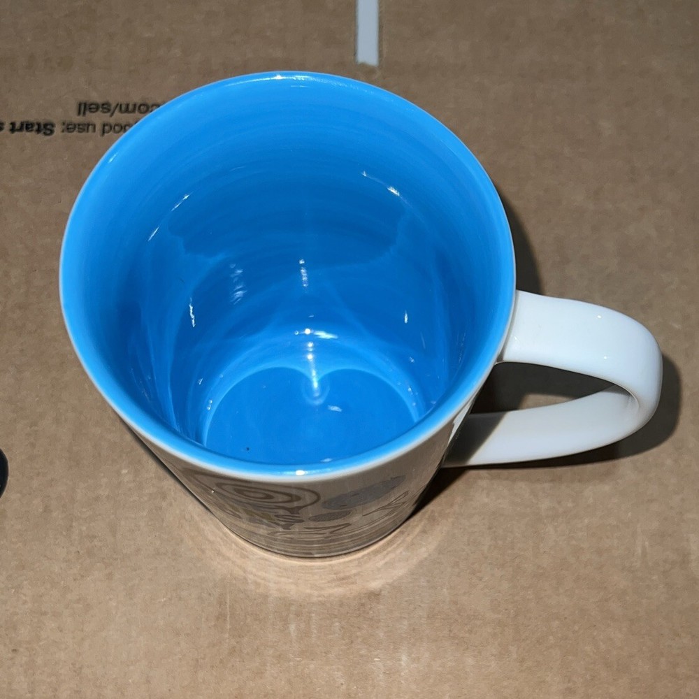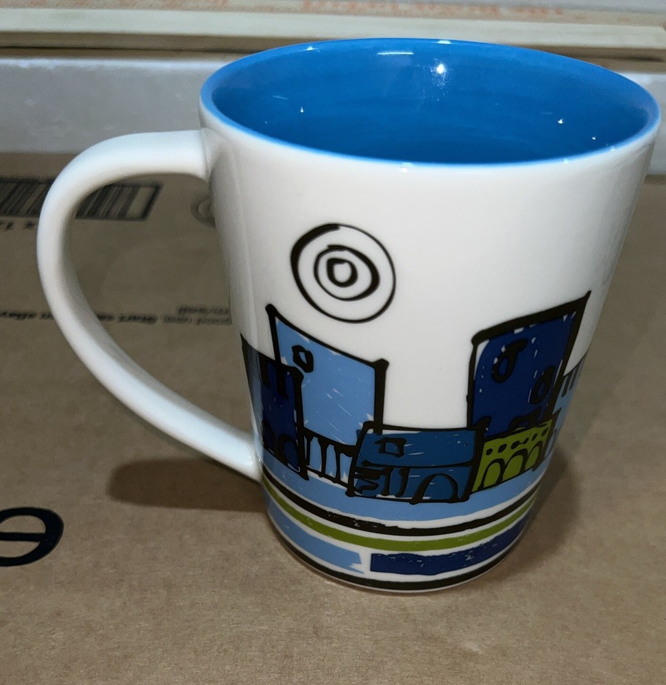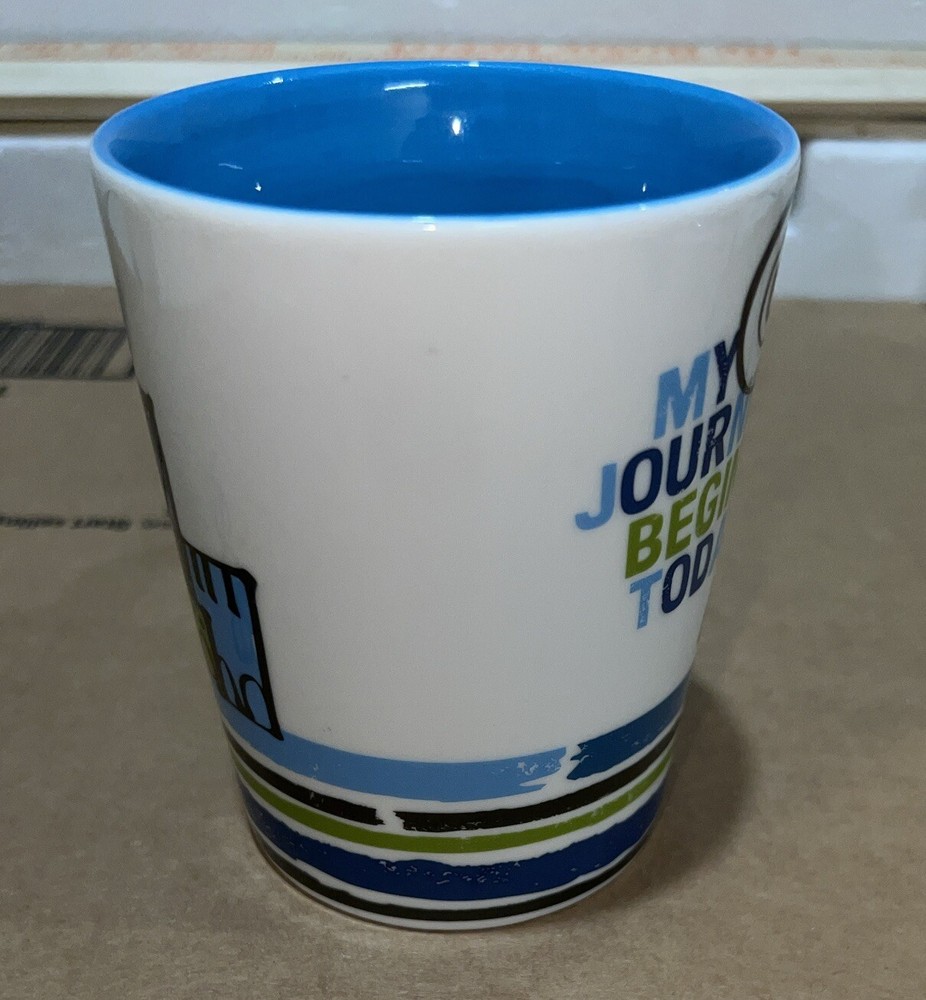 STARBUCKS COFFEE 2008 14 oz MY JOURNEY BEGINS TODAY Scooter Mug Blue Inside EUC