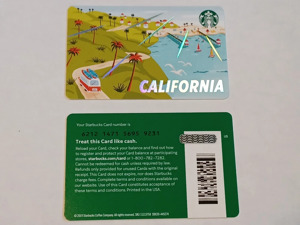 STARBUCKS GIFT CARD (CALIFORNIA) NEW NEVER SWIPED PIN INTACT (COLLECTIBLE, NO....