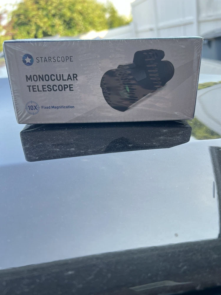 This is a compact black monocular telescope by starscope with a 10x maximum magnification. It includes a zoom lens and comes in a unit quantity of 2. The package also includes an adjustable smartphone mount, making it suitable for activities like hunting, birding, and general purpose use. This monocular telescope is designed to be compatible with smartphones for capturing images and videos.