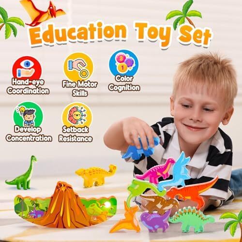Free eBay listing template designed by dewiso.com Dinosaur Toys for Kids 2-7 Kid Wooden Stacking Blocks Montessori Toy for 3 4 5 6 7 8 Year Old Boys Girls Birthday Gifts Toddler Balance Game Ages 2-4 3-5 Toys for Boy Girl Age 5-7 FREE AND FAST SHIPPING! Dinosaur Stacking Blocks: These wooden stacking blocks include 10 colorful cute dinosaurs (size: 2.5 in * 1.8 in) and a volcano balance base (size: 5.1 in * 2.4 in). The size is suitable for kids aged 2-8. Great dinosaur toys for little kids Great Montessori Toys: An interesting entry-level balance game. This stacking toy combines playtime with learning! Encourage your children to learn about colors and dinosaurs while developing their balance and control. Let your baby use their imagination and build more interesting shapes Develop More Skills: A variety of difficulties and games can make children concentrate for a long time. And it can cultivate children's concentration, thinking ability, hands-on ability, emotional control and stress resistance in the game Safety and High Quality: The blocks are made of high-quality wood and coated with non-toxic water-based paint. The smooth surface and rounded corners of the wood blocks can protect children's hands when stacked. The chunky design makes it easier for young children to grasp Amazing Gift Choice: The dinosaur stacking toy comes with a exquisite gift box. It is a fabulous gift idea for Christmas gifts, birthday gifts, Halloween gifts or taking it anywhere as travel toys for kids. It will keep your children happy for hours Product We offer a 30-Day Return Policy on items which you are not completely satisfied with. You have the option for a full-refund or an exchange of the item. No returns are available on items shipped outside of the US . Shipping We offer Free Shipping to the US and ship within 2 business days of payment, usually sooner. We use UPS express shipping. That's why your products are usually delivered within 3 days . Contact We try our very best to make sure every customer is completely satisfied. If there's a problem , message us! We're happy to help. 24/7 live chat available.