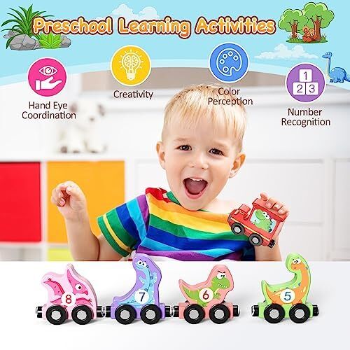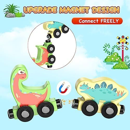 Absolutely love this magnetic dinosaur train set! My 4-year-old is obsessed with both trains and dinosaurs, so this was a perfect combo. The wooden pieces are sturdy, the magnets connect easily for little hands, and it's been great for imaginative play and learning about colors and shapes. Highly recommend for any young dino fan!