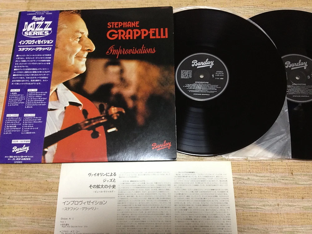 Format Artist/Title Label Pressing Condition Sleeve/Vinyl LP Stephane Grappelli/Improvisations Polydor.L30B1070/71 Japan Excellent/Excellent,Excellent Released in 1983. Rare Japan pressing 2LP with OBI.