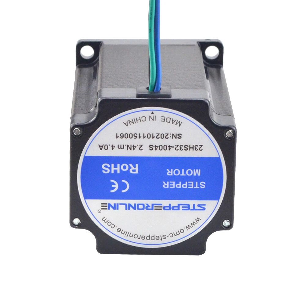 Package include: 3pcs Nema 23 Stepper Motor Electrical Specification Manufacturer Part Number: 23HS32-4004S Number Of Phase: 2 Step Angle: 1.8 deg Holding Torque: 2.4Nm(339.79oz.in) Rated Current/phase: 4.0A Phase Resistance: 0.9ohms Inductance: 3.4mH ± 20%(1KHz) Physical Specification Frame Size: 57 x 57mm Body Length: 82mm Shaft Diameter: Φ8mm Shaft Length: 21mm D-cut Length: 15mm Number of Leads: 4 Lead Length: 300mm Weight: 1.2kg Connection