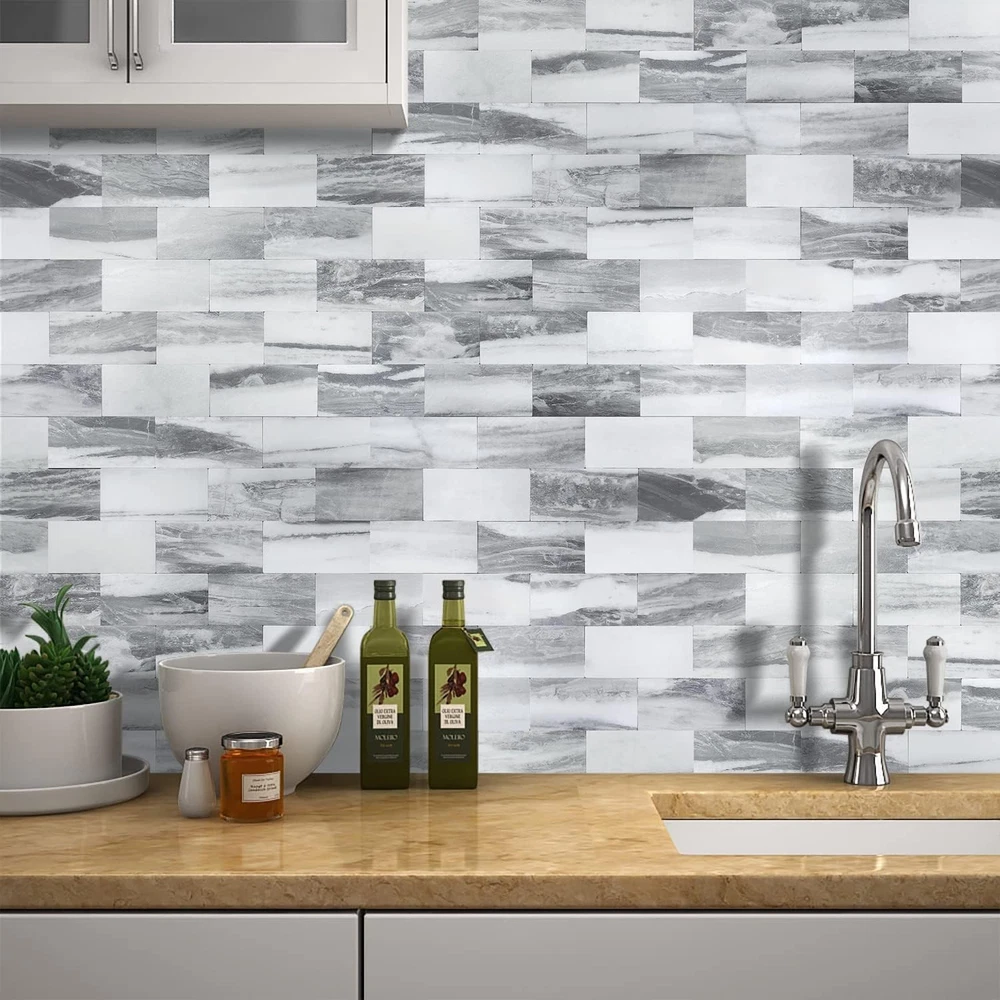 $ 6.81Peel and Stick Backsplash for Kitchen, Self-Adhesive Tile Hexagon White Marble