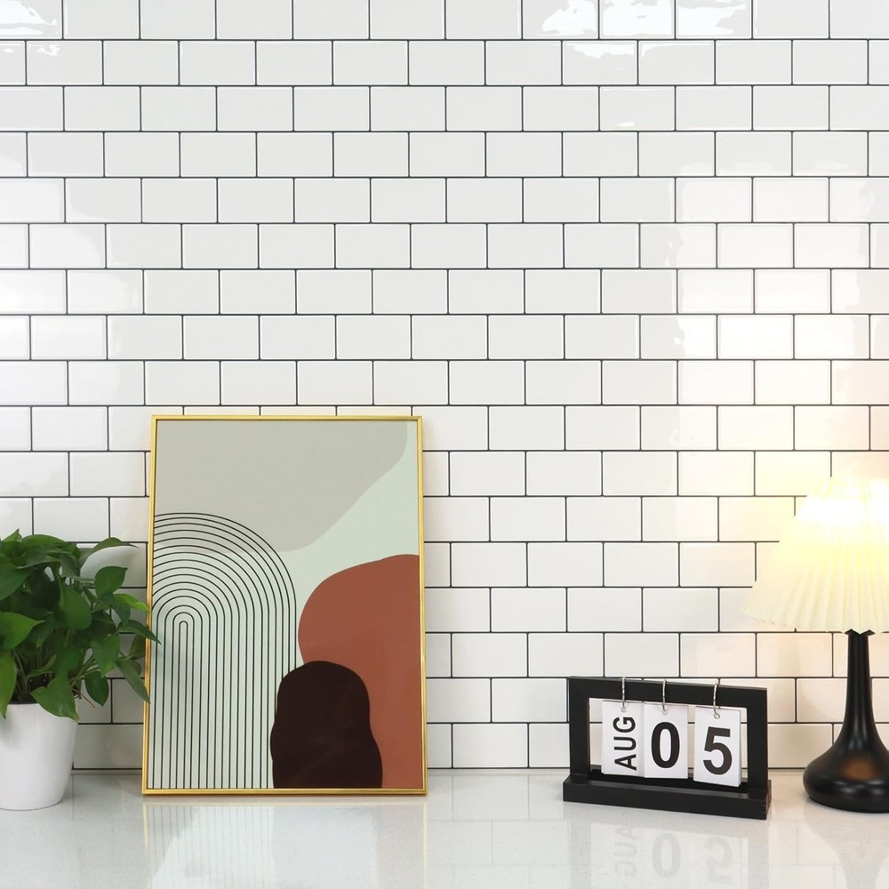 STICKGOO 10-Sheet White Subway Tiles Peel and Stick Backsplash, Stick on Tiles Kitchen Backsplash (Thicker Design) Upgrade your kitchen or bathroom easily with STICKGOO White Subway Tiles Peel and Stick Backsplash. Designed with a thicker structure for enhanced durability, these self-adhesive tiles offer a realistic subway tile look without the need for grout, tools, or professional installation. Perfect for kitchens, bathrooms, RVs, and laundry rooms, the tiles are water-resistant, heat-resistant, and easy to clean. Simply peel, stick, and transform your space with a modern, clean white finish that complements any décor style. Peel and stick backsplash tiles Classic white subway tile design Thicker design for improved durability No grout, no tools, no mess installation Water-resistant and heat-resistant surface Easy to clean and maintain Ideal for kitchen backsplashes, bathrooms, RVs, and more Package includes 10 sheets