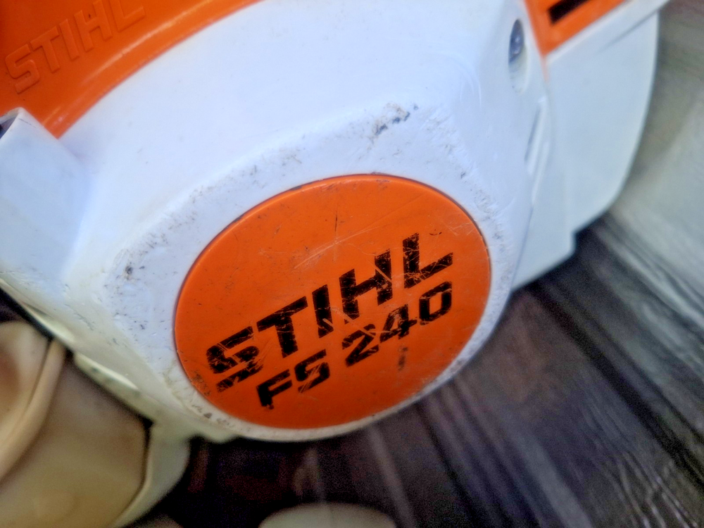 For sale is this used Stihl FS 240 brush cutter with Bike handle brush cutter with saw blade. it can be use with nylon head string trimmer weedeater head if needed (No included).still looks in excellent condition has scratches here and there. It is 2 stroke machine and runs with 50.1 or 2 cycle mix gas only . This machine is powerful built for professional use all day long.starts right away and runs excellent .you will receive it very clean ready to do the job is needed. please see all photos to help determine over all condition as they are a part of the item descri ption . zoom my pictures so you can see them better. you will receive it just like is on my pictures will ship same day. as soon as payment received. If you have any questions email me. Check out my other items !