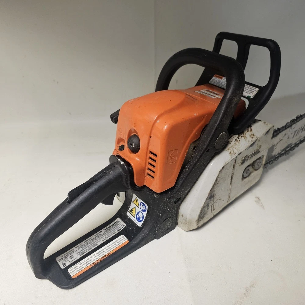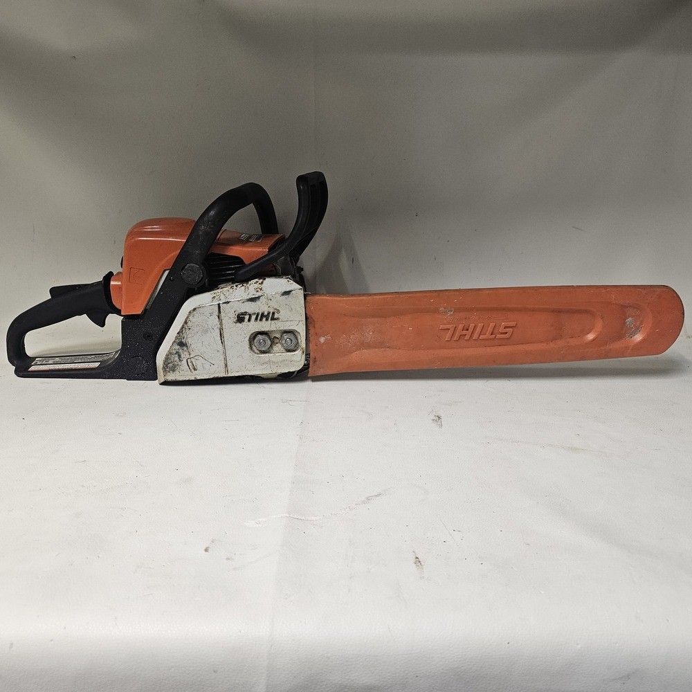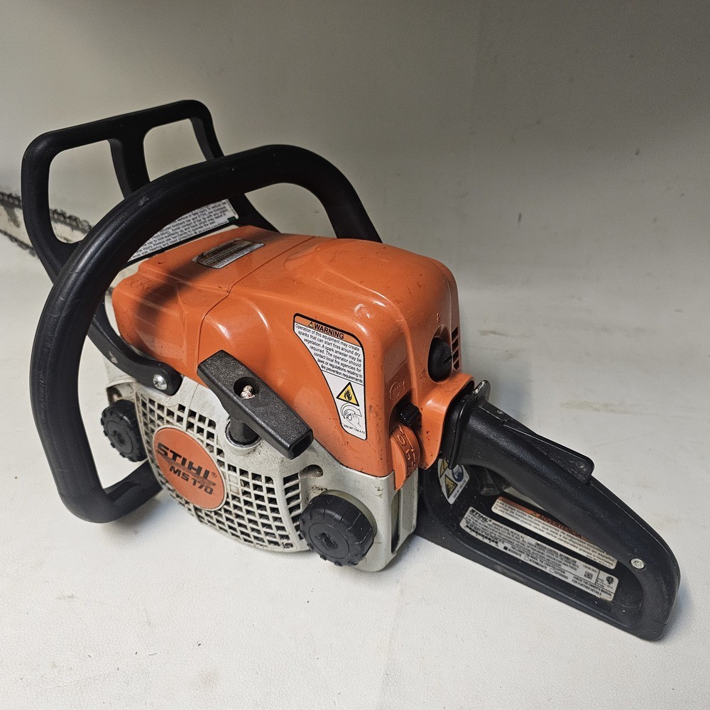 This pre-owned STIHL MS 170 chainsaw runs like a champ! Lightweight yet powerful, it cuts through wood effortlessly. Starts up easily and handles like a dream. Perfect for small jobs around the yard. Great value for the price—highly recommend!