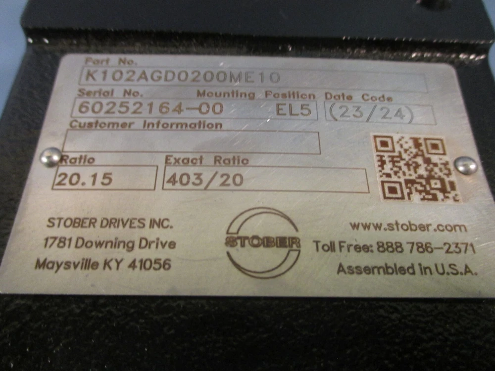 Gearbox For sale is a STOBER SERVOFIT PRECISION GEARHEAD/GEARBOX 20.15 RATIO K102AGD0200ME10. The unit appears to be new and unused by the previous owner. The unit may show slight signs of cosmetic wear from the previous owner such as scratching, discoloration, shelf wear, paint chipping and/or other markings that should not impact the unit's performance. Overall the unit appears to be in excellent, new, ready to use condition. The unit includes everything shown in photos. Thank you for looking and please let us know if you have any questions. eTech Surplus Rochester, NY Shipping: Charged according to location. Please note that eBay charges sales tax, we do not. We at eTech Surplus strive to honestly and accurately describe each item we sell. Please feel free to contact us with any questions. International Buyers - Please Note: Import duties, taxes and charges are not included in the item price or shipping cost. These charges are the buyer's responsibility. Please check with your country's customs office to determine what these additional costs will be prior to bidding or buying.