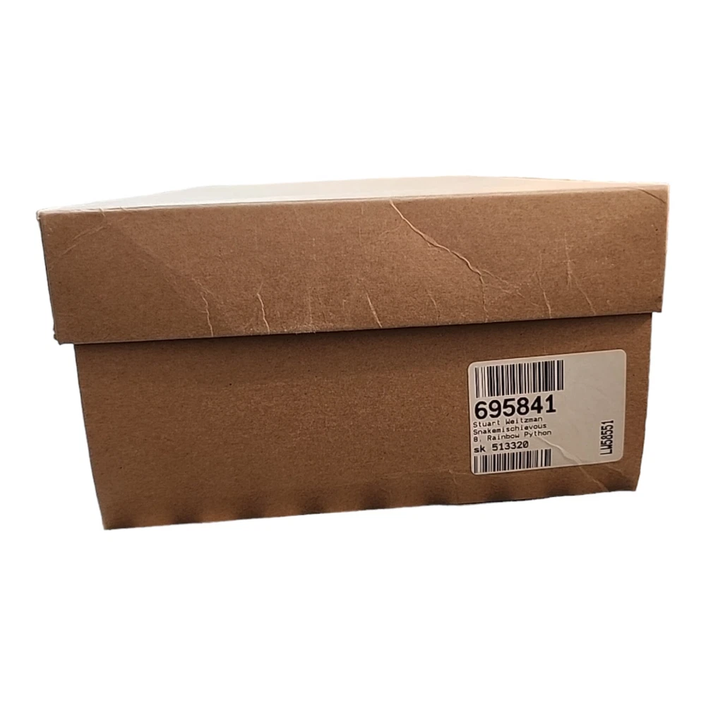 Step out in style with these eye-catching Stuart Weitzman Rainbow Python Stiletto Heel Strappy Sandals, a perfect blend of fashion and function for the discerning woman. The striking multicolor animal print upper is crafted from premium leather, setting the stage for a sophisticated yet playful look that's ideal for a variety of occasions, from business meetings to formal events, or a night out on the town. Designed with both comfort and elegance in mind, these sandals feature a supportive ankle strap with a buckle closure to ensure a secure fit, while the breathable lining and insole offer all-day wearability. The high stiletto heel adds a touch of drama to your ensemble, measuring a sleek 3 to 3.9 inches, perfect for elevating your height without compromising on style. Whether paired with a little black dress or tailored trousers, these sandals are a versatile addition to any wardrobe.