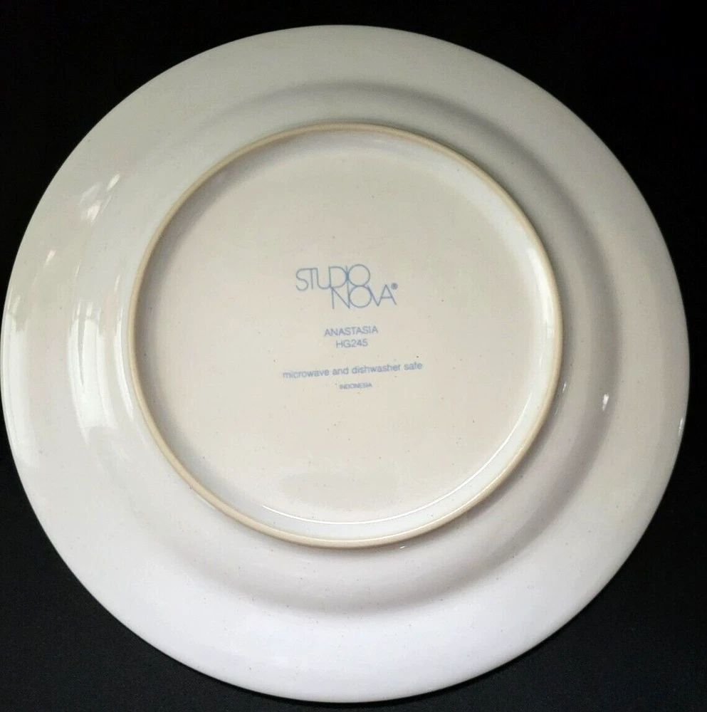 Anastasia Dinner plate is off white with gray flecks and a green and blue floral print at the rim. Measures 11" in diameter. Price is per plate. Check out my other items, I combine shipping! Payment Payment is requested within 3 days. If no contact or payment is made within 3 days, a dispute will be filed and the item relisted Shipping Your item(s) will be shipped within 1 business day of payment received. Delivery confirmation is included on packages shipped to a US destination. Insurance is included. For a quote, add items to the shopping cart. International Shipping All duties or tariffs, if any, are the responsibility of the buyer and seller does not have any control over these charges or delays due to custom's inspections. Returns I accept returns only when the item is returned in the same condition as received. Buyer to pay all shipping charges unless the item is not as described. Please contact me if you have any problems.