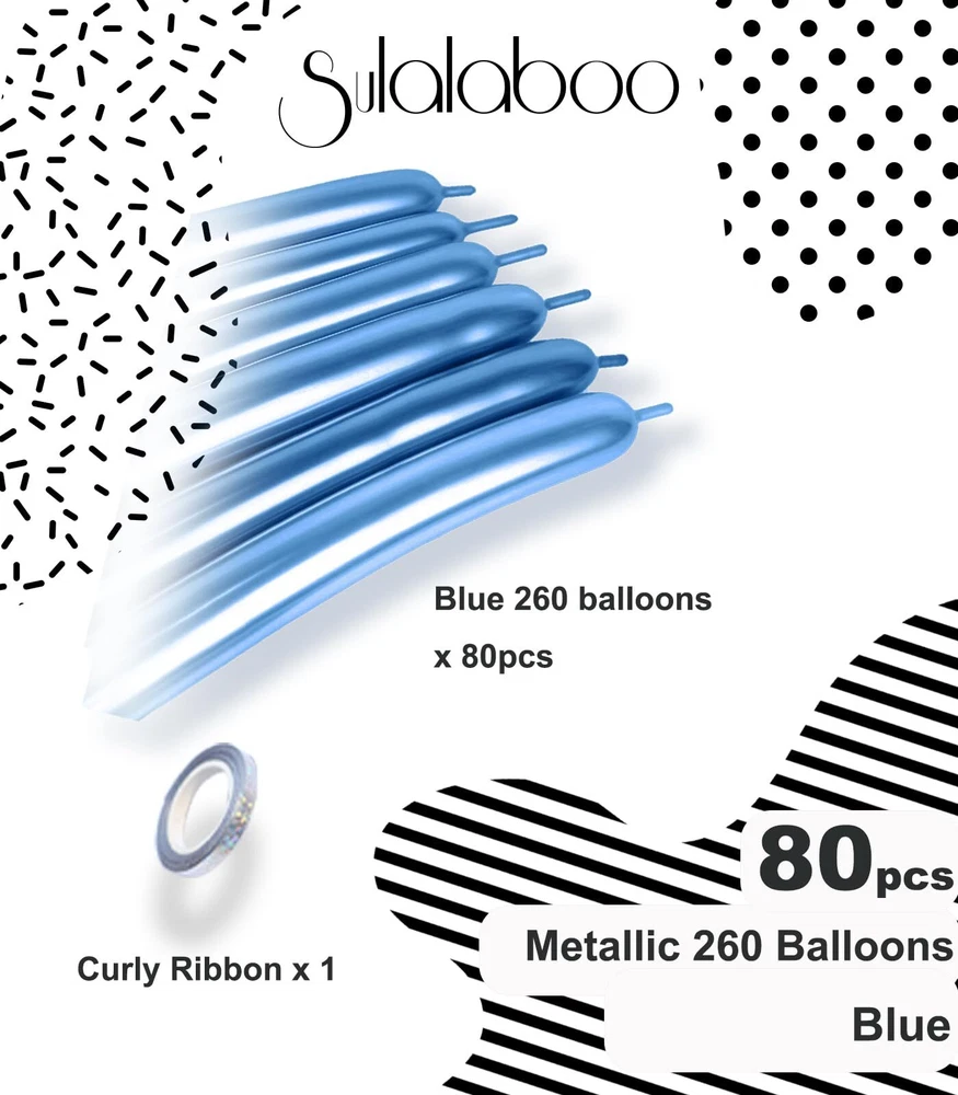 SULALABOO Blue Metallic 260 Balloons 80PCS Latex Long Shiny Balloon to Twisting Flowers Animals for Birthday Party Anniversary Wedding or Other Party Events and Festivals DIY [ Premium Value Package ] : Each pack contains 80pcs blue 260 balloons, in addition, we also provide you with ribbon decorations to make your party more exciting and fun [ Get Creative ] : It is recommended to use an air pump (not included) to inflate these blue 260 balloons and let your imagination run wild. These 260 long balloons can be twisted into shapes like flowers or animals like dogs, rabbits and any decorative accessory you like to create. Let children make their own twisting balloons, can cultivate their creative ability and develop their imagination [ Wide Range of Use ] : These blue metallic 260 balloons are perfect for decorating birthday parties, anniversaries, graduations, kids' parties, weddings, baby showers, Easter, and other themed events and festivals. Are you ready to get all the kids excited at your next celebration? [ Bright & Quality ] : These malleable blue metallic 260 balloons have a beautiful shiny surface. Made with material 20% thicker than average latex balloons, they are durable and long-lasting. However, be careful not to overinflate them or place them near hot or sharp objects to avoid bursting the balloon [ After-sales Service ] : We are committed to providing the best service. If you encounter any issues with our balloons, please contact us via email, and we will do our best to address your concerns [ Premium Value Package ] : Each pack contains 80pcs blue 260 balloons, in addition, we also provide you with ribbon decorations to make your party more exciting and fun [ Get Creative ] : It is recommended to use an air pump (not included) to inflate these blue 260 balloons and let your imagination run wild. These 260 long balloons can be twisted into shapes like flowers or animals like dogs, rabbits and any decorative accessory you like to create. Let children make their own twisting balloons, can cultivate their creative ability and develop their imagination [ Wide Range of Use ] : These blue metallic 260 balloons are perfect for decorating birthday parties, anniversaries, graduations, kids' parties, weddings, baby showers, Easter, and other themed events and festivals. Are you ready to get all the kids excited at your next celebration? [ Bright & Quality ] : These malleable blue metallic 260 balloons have a beautiful shiny surface. Made with material 20% thicker than average latex balloons, they are durable and long-lasting. However, be careful not to overinflate them or place them near hot or sharp objects to avoid bursting the balloon [ After-sales Service ] : We are committed to providing the best service. If you encounter any issues with our balloons, please contact us via email, and we will do our best to address your concerns Shipping from the USA All of our products are shipped from the USA, ensuring quick delivery to your destination. Payment We offer the following payment methods: PayPal, credit card, bank transfer, and eBay's secure payment system. Free Shipping & Free Returns Shipping within the USA is FREE. Additionally, any return is absolutely free for you. Risk-Free Purchase You have the option to return an item within 30 days without any justification. We cover the return shipping costs! Fast Shipping We ship immediately upon receipt of payment. Generally, the package is delivered within 2-3 days in the USA. If it takes longer, we will contact you. Quality and Costs Made in Europe, USA, China No customs fees or additional charges Total satisfaction guarantee Invoice with declared VAT available upon request in .pdf format Feedback Your feedback is very important to us. After you pay for your purchase, you will automatically receive positive feedback from us.