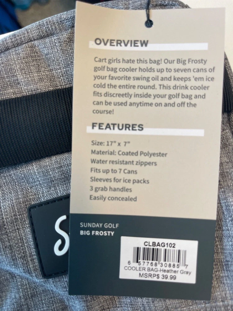 SUNDAY GOLF "Big Frosty" Beer can/ drink holder that fits in your golf bag. holds up to 7 beer / drink cans Heather grey color, Very cool! Brand new with Tags! Fast Shipping, Free Shipping! Buy It Now!