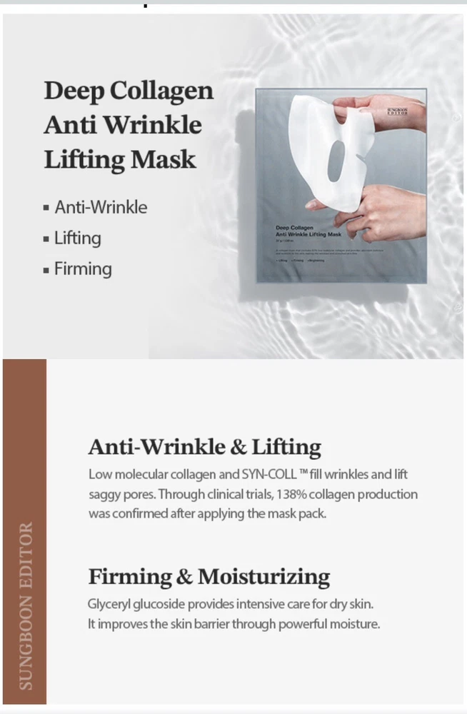 SUNGBOON EDITOR Deep Collagen Overnight Mask 37 G x 17 sheets/Box. A $4.70 /sheet value Facial Hydrogel Masks with low molecular weight collagen for elasticity, firming, and moisturizing The real collagen 2,160,000ppb