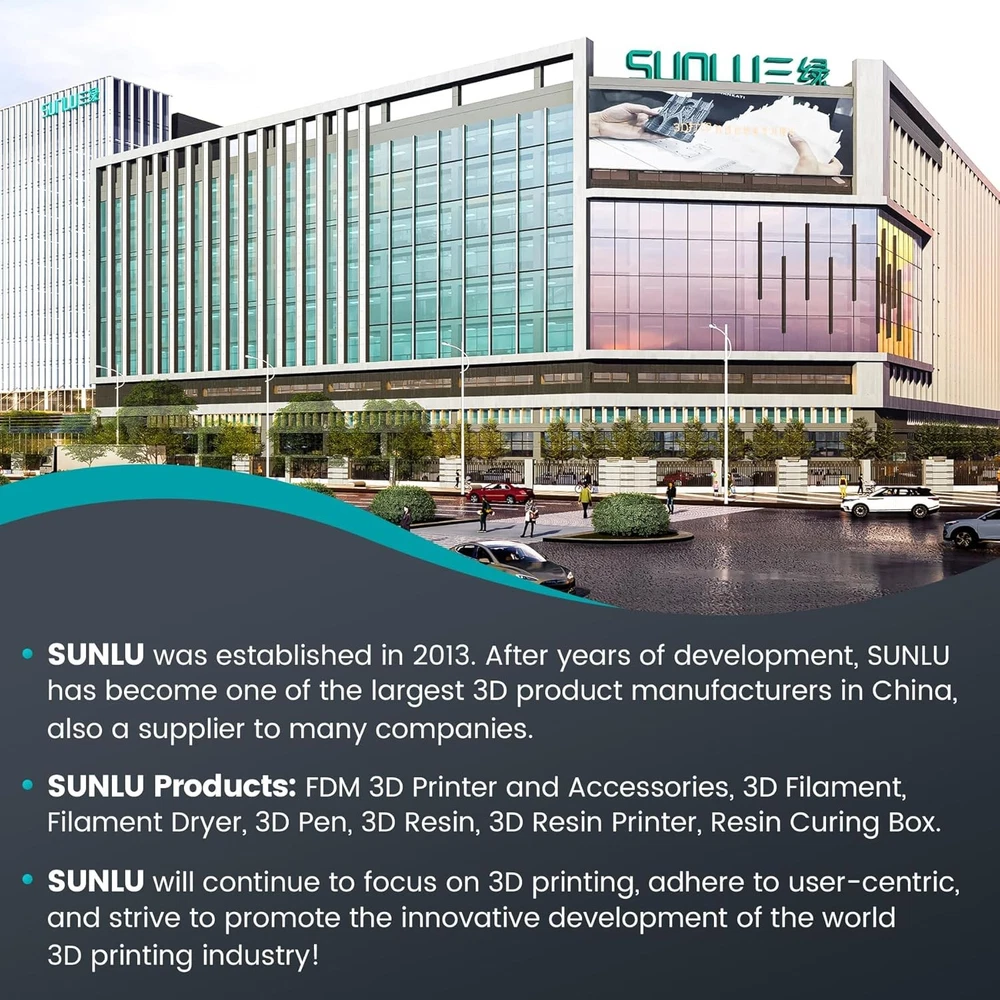 SUNLU PLA 3D Printer Filament Bundle 1.75mm 8 Pack 2kg Total Vacuum Sealed Brand SUNLU Material Polylactic Acid Color Bundle-pla 2kg 8 Colors Item Weight 2 Kilograms Item Diameter 1.75 Millimeters Manufacturer SUNLUGW Package Dimensions 12.17 x 6.1 x 5.98 inches Item model number PLA Filament Bundle Material Type Polylactic Acid Number of Items 8 Size 2KG Manufacturer Part Number SLUS-PLA-BK+BW+GY+CB+RD+KB+OG+OK-250G*8 Features 【SUNLU Main 3D Products】- SUNLU offers a wide range of high-quality 3D printing products, including 3D printing filaments, 3D printers and various materials. 【Recommended settings】- We recommend a printing speed of 100-200mm/s, a nozzle temperature range of 210-240℃ and a print bed temperature of 50-60°C. 【Wide Compatibility】- SUNLU PLA 250G filament has a diameter accuracy of +/-0.02 mm, small diameter error, wide compatibility, and can be used on various common 3D printers. 【Filament Spool Diameter】- PLA 0.25KG Spool Diameter: 140mm, Spool Width: 36mm, Spool Hub Hole Diameter: 53mm. Compatible with 99% of 3D printers. 【Neatly Wound 3D Filament Spool】- 100% neat rate that reduces the risk of tangles and jams, and provides a smoother and more efficient 3D printing experience. 【PLA Filament 1.75 mm】- SUNLU PLA filament consistent diameter tolerance 1.75mm ±0.02mm, Tight tolerances make PLA filament smoother and more consistent when printing. 【Clog-Free & Bubble-Free】- Designed and manufactured with superb layer bonding and great fluidity for smooth and stable extrusion. 【PLA Filament Bundle】- Provides 8 color options to meet different printing needs of users, allowing users to choose according to preference and project requirements. 【SUNLU PLA 3D Printer Filament】- SUNLU PLA filament is reliable, versatile, and easy to use. No clogs, bubbles, or tangles, its excellent layer adhesion ensures high-quality prints every time. Our Business 100% Customer Satisfaction We go above and beyond to ensure you receive the best level of service. Returns We want you to be happy with your purchase, however in the rare occasion that you are not, please let us know and we will contact you to arrange either a collection or a refund. Please CONTACT US before leaving any negative feedback and we will promptly sort out any issue with your order. 7731526