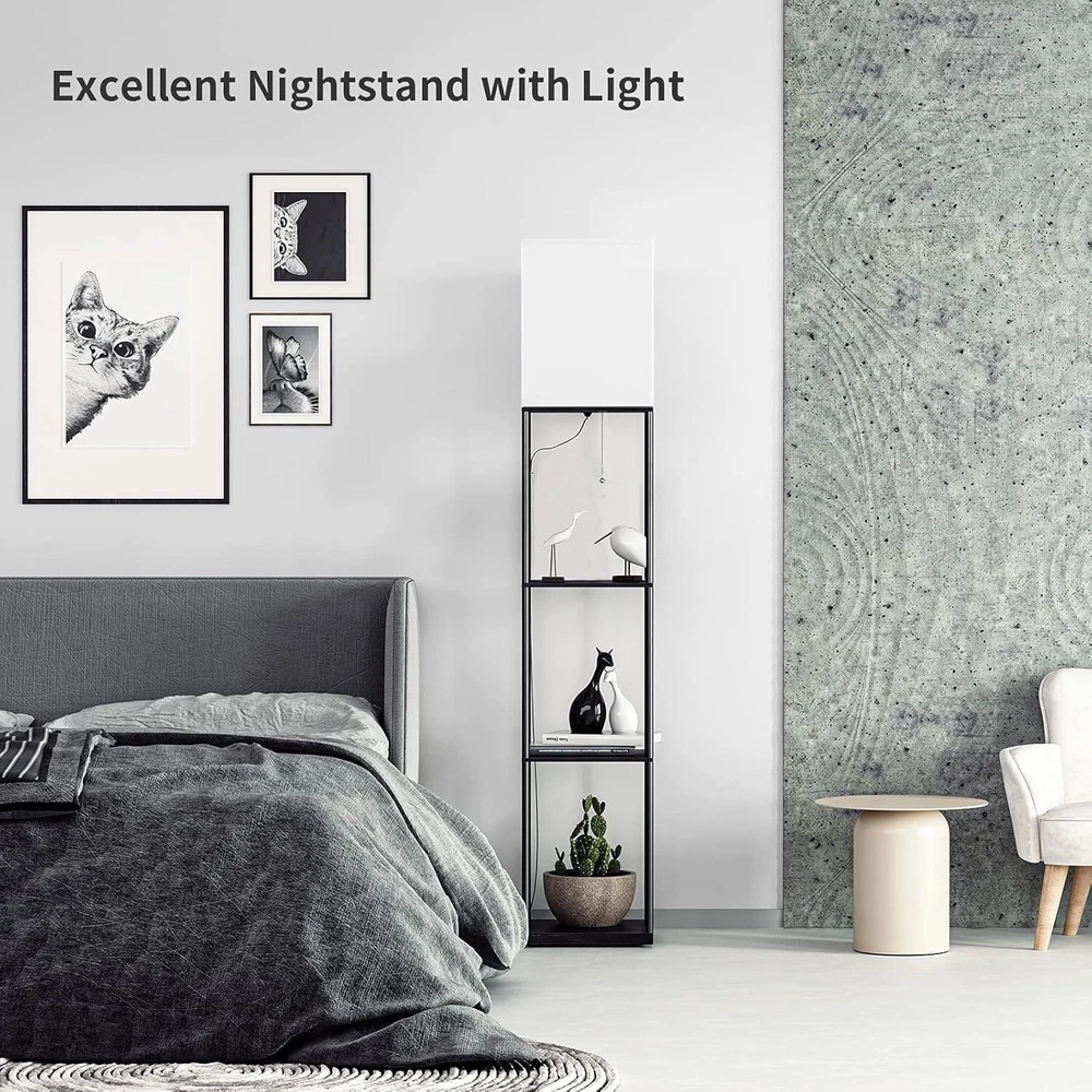 3-Color Temperatures LED Bulb Included: SUNMORY shelf lamp includes a 9 Watt, 800 lumen power saving LED bulb, so you don’t need to buy extra bulb; The LED lamp bulb is 3 color temp: 3000 K / 5000 K / 4000 K; You can switch different color temperatures according to different scenes; Also can work with smart outlets that are Alexa, Google Home Assistant, or Apple HomeKit enabled(requires smart outlet sold separately) Non-glaring Cloth Lampshade: This shelf floor lamp is equipped with a high-quality off-white cloth lampshade and opens upwards; With the built-in three-color temperature bulb, it can be used for both functional lighting and ambient lighting Storage & Display: This tall lamp has 3 layers of high density fiberboard, each with a maximum weight of more than 50 pounds; On the shelf, you can put decorations such as vases and photo frames, as well as daily necessities such as books and mobile phones; So it can be used as a corner lamp to decorate your living room or as a skinny nightstand with lamp to bring you life convenience; It is very suitable as a gift for Mother's Day, Thanksgiving Day, or Christmas Minimalist Design & Versatile Style: The contemporary stand up lamp matches asian, mid century modern, rustic, country and farmhouse decor thanks to its diverse lighting effects and simple lines Easy to Assemble: SUNMORY shelf floor lamp has been improved in craftsmanship and simplified the installation steps; Compared with other similar products, it will save you 30% percent of installation time; The accompanying package comes with the tools needed for assembly and an instruction manual containing text and video installation steps; Simple repetitive operations are very easy for most people; Warm Tip: Please tighten each post to keep the whole lamp stable