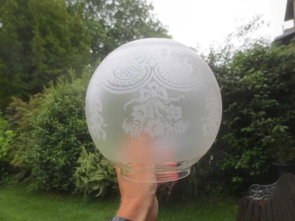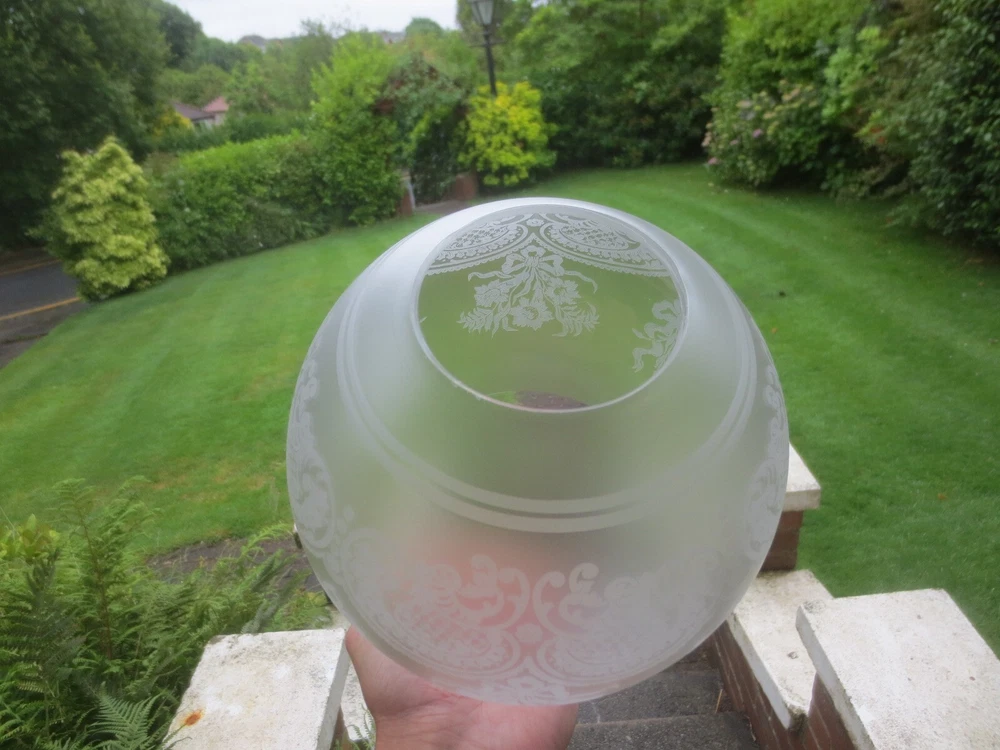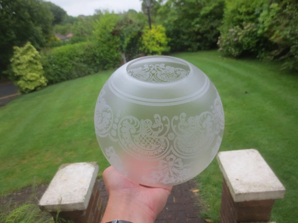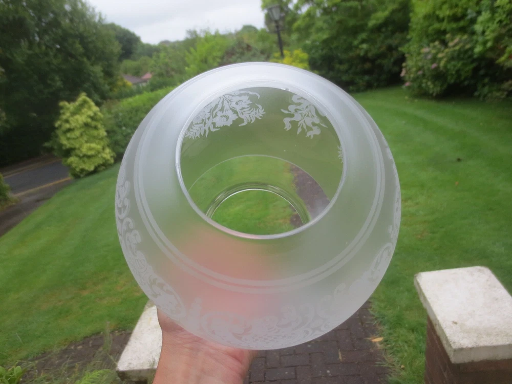 UP FOR AUCTION IS THIS ORIGINAL GLASS DUPLEX OIL LAMP SHADE, WHICH WILL FIT A STANDARD DUPLEX BURNER. IT IS APPROX 7 1/4 INCHES IN HEIGHT. THE BOTTOM STRAIGHT FITTER IS APPROX 4 INCHES. CHIPS ON THE FITTER RIM AND TOP OPENING THE GLASS DOES CONTAIN SOME AIR BUBBLES, SMALL SURFACE SCRATCHES AND BLOWING IMPERFECTIONS TO BE EXPECTED OF ANTIQUE GLASS. IF YOU REQUIRE FURTHER INFORMATION OR EXTRA PHOTOS, PLEASE CONTACT ME. PLEASE NOTE, ANTIQUES WHICH ARE MANY YEARS OLD WILL NOT BE IN BRAND NEW AND UNTOUCHED CONDITION. ANY MAJOR DAMAGE OR FAULTS I WILL TRY AND POINT OUT. EVEN WHEN THEY ARE IN GREAT CONDITION, THEY WILL HAVE SOME WEAR COMMENSURATE WITH THEIR AGE AND USE. PLEASE TAKE THIS INTO ACCOUNT. FOR MORE INFORMATION OR EXTRA PHOTO'S PLEASE CONTACT ME.