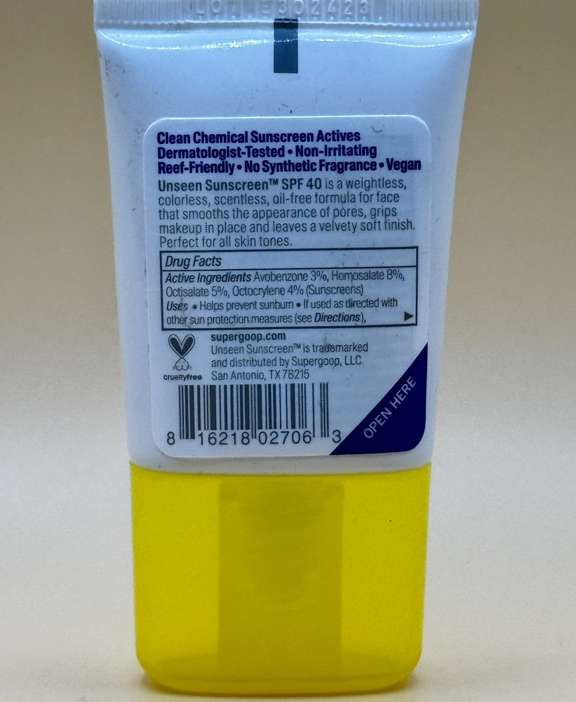 SUPERGOOP! Unseen Sunscreen SPF40 0.5 oz Mini Travel Size, Exp 04/25 New/Sealed.