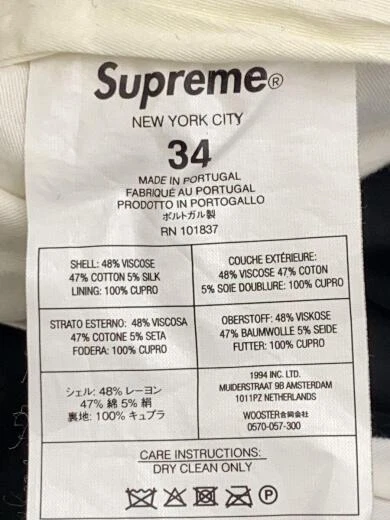 SUPREME Pleated Nep Trousers Bottom 34 Cotton BLK