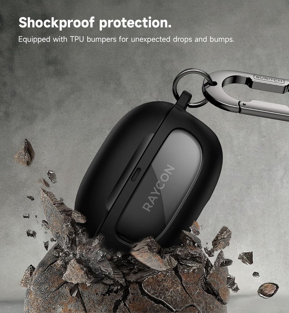 SURITCH Case for Raycon Everyday Earbuds Plus, Shockproof Magnetic Black Product Details Package Dimensions: 3.39 x 2.6 x 1.46 inches Item Weight: 2.89 ounces Item model number: Raycon Everyday Earbuds (2024 Edition) Special features: Heavy Duty Protection Other display features: Wireless Form Factor: Case Color: Black Manufacturer: SURITCH Brand: SURITCH Compatible Devices: Raycon Everyday Earbuds (2024 Edition), Raycon Everyday Earbuds Plus Shell Type: Hybrid 【Compatibility】This magnetic-locking case is designed exclusively for Raycon Everyday Earbuds Plus & Everyday 2024 Edition, with precise cutouts for easy access to the charging port and LED indicator light(Earbuds & Charging Case are not included) 【Secure Magnet-Locking】Built with 4 ultra-strong magnets that snap the top and bottom pieces securely together, this shockproof case ensures your Raycon bluetooth true wireless in-ear Buds stay firmly closed even during falls from up to 7ft 【Easy access on the go】With a super sturdy, anti-rust carabiner and keyring, this bumper case for Raycon headphones true wireless earbuds can be securely clipped to your bag, backpack, belt loop, you can easily reach your earbuds whenever you need them 【Reliable drop protection】This protective case for Raycon Everyday Earbuds is made with a shock-absorbing TPU shell and a sturdy PC window, designed to provide robust protection against damage while keeping the earbuds logo visible 【Easy to charge】This magnetic case works great with wireless chargers. Whether you’re charging wirelessly or with a cable, it offers a smooth and efficient charging experience without the hassle of removing the case 【Fits easily and securely】This protective cover is breeze to install, once it fits in place, it stays securely put. For your peace of mind, we've included non-residue adhesive strips for added security 【Made to stand out】From top-notch materials to cutting-edge designs, Suritch redefines excellence in every detail. We're here to elevate your device experience with standout protection, functionality, and style