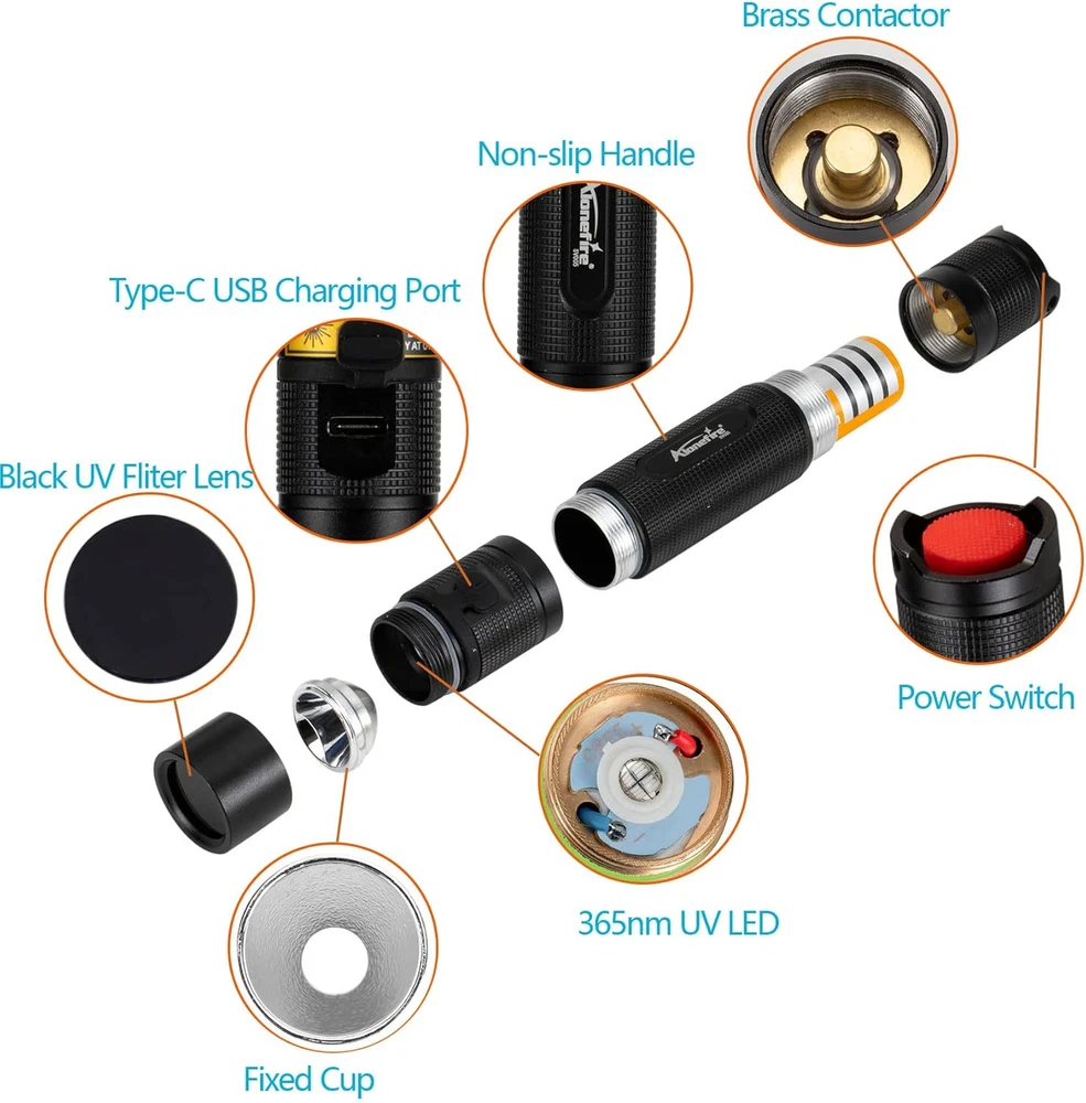 SV005 10W LED 365Nm UV Flashlight Blacklight Portable USB Rechargeable Black Lig