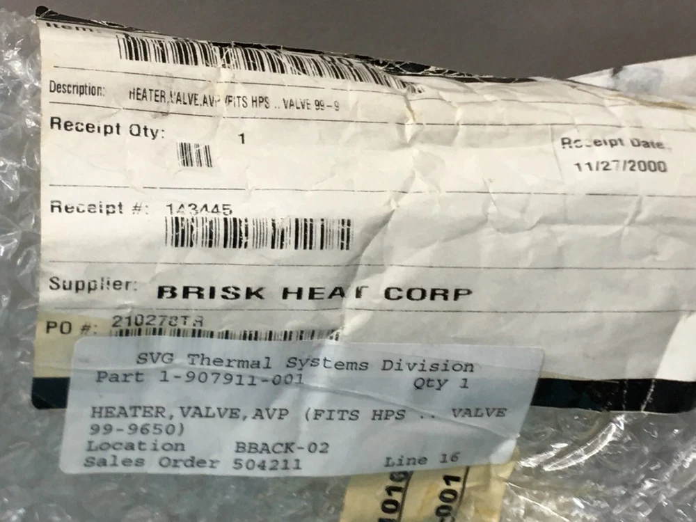 *Please contact us for same-day order processing* SVG Thermal Systems 907911-001 Heater, Valve, AVP (Fits HPS Valve 99-9), 1-907911-001, Aviza The item has been refurbished, and we are selling it as Seller-Refurbished. Please refer to the pictures for more details. Price is for 1 item. We have provided pictures and a detailed description of each item, including its condition. If you have any questions or need more information, please contact us, and we will respond promptly. Please note that we are not selling any additional accessories with the item, such as cables, manuals, or software unless they are explicitly mentioned in the description and shown in the pictures. We cannot test the equipment, and it is being sold "As is and Where is" without any warranty, expressed or implied, regardless of its condition. We encourage you to inspect the products before making a purchase. All sales are final, and no returns or exchanges are permitted. Please review our policies before making a purchase. Buyer is responsible for all shipping and handling costs, including any applicable insurance, taxes, VAT, tariffs, or duties. The buyer is required to sign the shipping confirmation upon delivery of the item, as needed. International buyers: Some products are subject to U.S. export laws and cannot be sold to countries in Group E. We may need up to 30 days to determine the export classification (ECCN) and, if required, an additional 30-90 days to obtain an export license. To comply with regulations, we need a written statement with the End User, End Use, and agreement to follow the Export Administration Regulations (EAR). You will receive an email with required documents, and your order cannot be completed until all information is provided. After we receive your payment, please allow us a period of 3 business days to process and ship your order. We welcome all buyers to inspect the equipment before making a purchase. For additional information, please email or contact us. Farmon Inc. 562 South Milpitas Blvd. Milpitas, CA 95035 Our operating hours are 9 am to 4 pm (PST/GMT-8), Monday through Friday. Appointments can be made for Saturday and Sunday. We would like to acquire any surplus or unnecessary inventory you may have. Feel free to get in touch with us to have your inventory assessed and taken off your hands. We offer a wide range of semiconductor components and equipment, including RF generators, chillers, turbo pumps, cryo pumps, MFCs, vacuum pumps and controllers, step motors, drivers, and more.