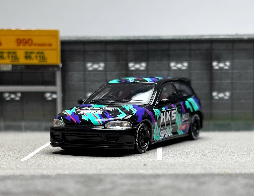 SW 1:64 JDM EG6 Civic SIR HKS Hatchback Sports Model Diecast Metal Car