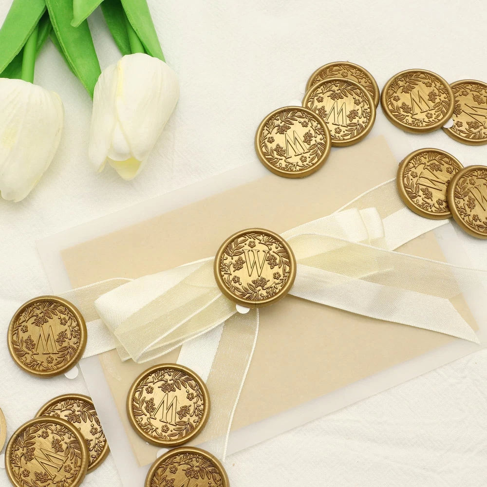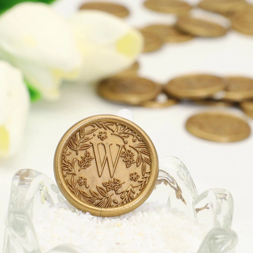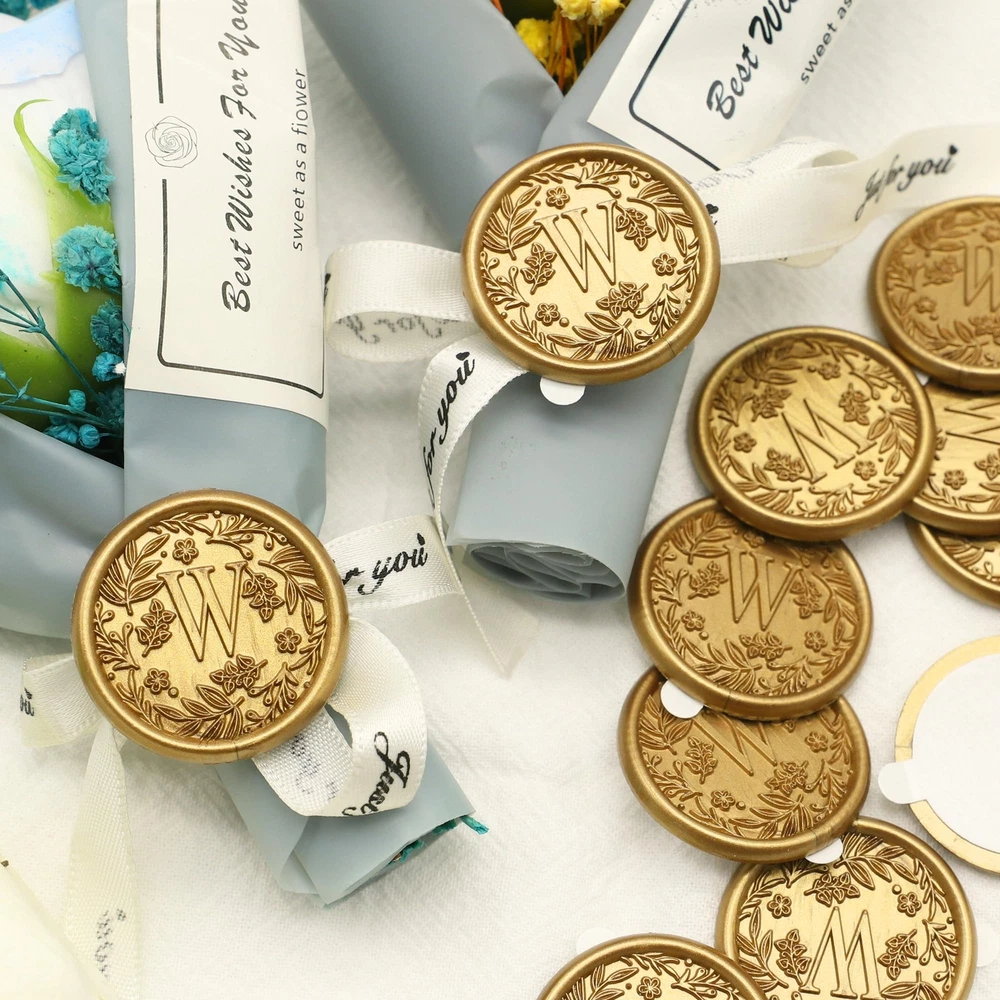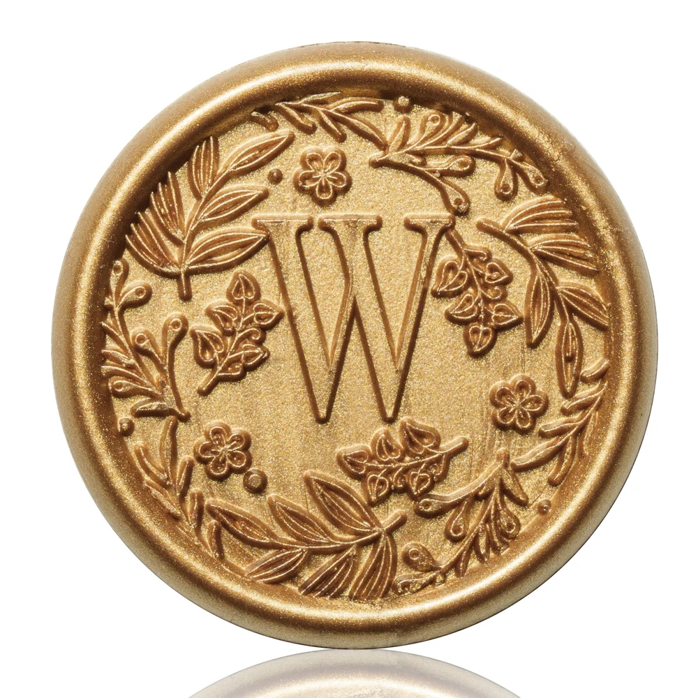SWANGSA Letter Wax Seal Stickers, 30 Pcs Botanical Flowers Initial Alphabet W