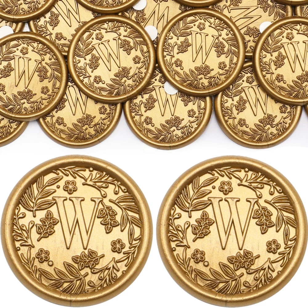 SWANGSA Letter Wax Seal Stickers, 30 Pcs Botanical Flowers Initial Alphabet W Wax Seal Stickers Antique Gold Envelope Seal Stickers, for Wedding Invitation, Christmas, Gift Wrapping