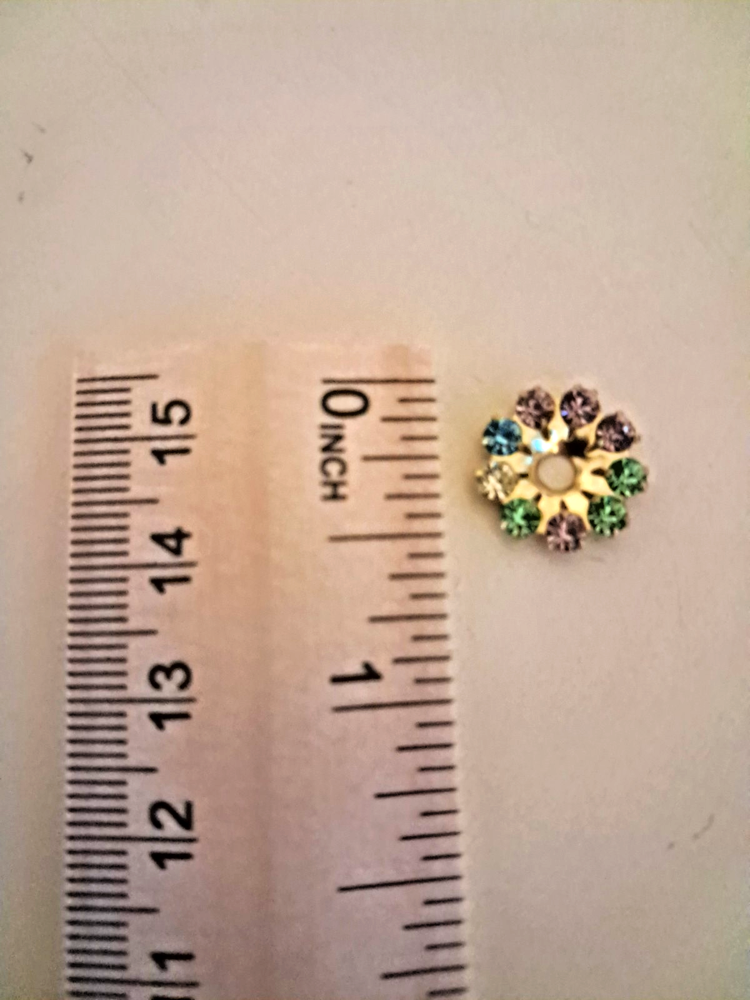 SWAROVSKI 10 MM MULTICOLOR CIRCLES IN BRASS SETTINGS WITH CENTER HOLE (36 PIECES)