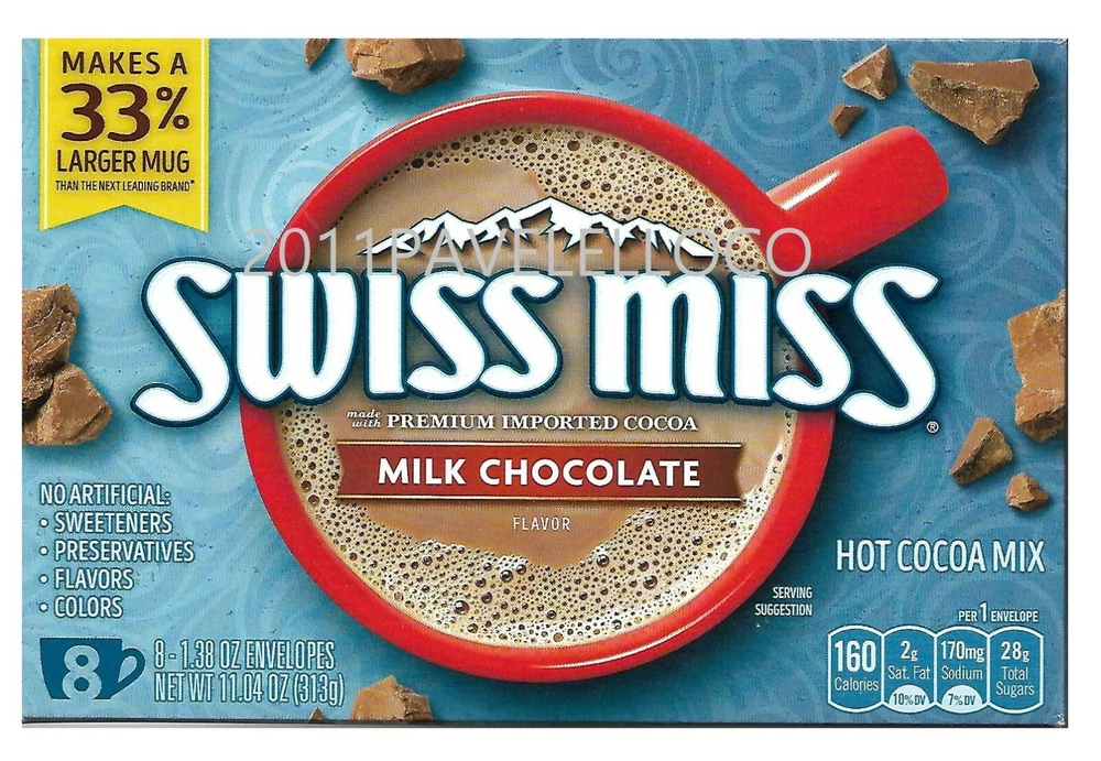 SWISS MISS HOT DRINKS MIX ,DARK ,WHITE ,SUGAR FREE,CHOCOLATE,MILK,LUCKY CHARM AA