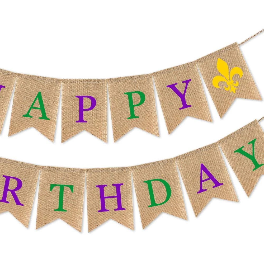 SWYOUN Burlap Happy Birthday Banner Mardi Gras Birthday Party Bunting Garland Supplies Material: 100% natural burlap. Durable and reusable. No diy required: the burlap banner is pre-assembled with adjustable long rope, save your time to decorate party, and the interval space of these burlap can be adjusted as you like. Great for Mardi Gras Birthday Party decoration. And also can be used as photo booth backdrop. PACKAGE INCLUDE:One set with"Happy Birthday" banner. Material: 100% natural burlap. Durable and reusable. No diy required: the burlap banner is pre-assembled with adjustable long rope, save your time to decorate party, and the interval space of these burlap can be adjusted as you like. Great for Mardi Gras Birthday Party decoration. And also can be used as photo booth backdrop. PACKAGE INCLUDE:One set with"Happy Birthday" banner. Shipping from the USA All of our products are shipped from the USA, ensuring quick delivery to your destination. Payment We offer the following payment methods: PayPal, credit card, bank transfer, and eBay's secure payment system. Free Shipping & Free Returns Shipping within the USA is FREE. Additionally, any return is absolutely free for you. Risk-Free Purchase You have the option to return an item within 30 days without any justification. We cover the return shipping costs! Fast Shipping We ship immediately upon receipt of payment. Generally, the package is delivered within 2-3 days in the USA. If it takes longer, we will contact you. Quality and Costs Made in Europe, USA, China No customs fees or additional charges Total satisfaction guarantee Invoice with declared VAT available upon request in .pdf format Feedback Your feedback is very important to us. After you pay for your purchase, you will automatically receive positive feedback from us.