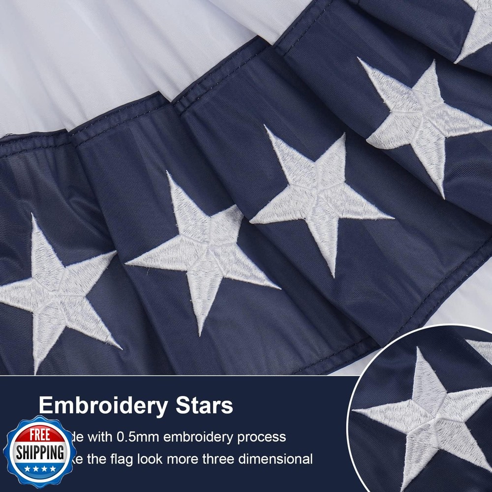 SYII Bunting Flag 3x6 Feet Outdoor (6 PCS), Embroidery Stars American US Bunting Flags with 3 Brass Grommets, Patriotic Half Fan Banner for Fourth of July Decor, 4th of july Decorations Outdoor Features SHOW YOUR PRIDE - Show your national pride by flying this U.S.A half-fan bunting flag, God bless America. LUXURY QUALITY - Made of heavy duty polyester fabric for all weather outdoor use. EMBROIDERED STARS - The stars of this embroidered Pleated Fan flag are sewn with tight white thread embroidery for a more beautiful 3D look. DURABLE - The Patriotic Decorative Flag Head is canvas reinforced with 3 brass grommets and painted with fade resistant paint. PERFECT GIFT - Our Patriotic Half Fan Flag would be the perfect gift for all Americans to show off your pride! Great holiday gift for friends, parents, cops, decorating rooms and garages. Shipping Free & Fast Shipping: We offer free shipping to most of the USA with a normal delivery time of 3-7 days. However, due to the current situation, additional delivery time (up to 3 weeks) may be required for some items. Alternative Carriers: We may use alternative carriers (e.g., USPS, FedEx, UPS) to ensure your package arrives safely and on time. Due to the use of multiple carriers, we are unable to provide a tracking number automatically. Handling Time: Orders are processed and shipped within 1-2 business days of receiving cleared payment. Shipping Restrictions: Shipping to Alaska, Hawaii, Puerto Rico, Guam, and other US territories may incur shipping charges or delivery restrictions. Please contact us before ordering, or your order can be refunded/cancelled. State Restrictions: Certain items may not be shipped to California due to state regulations. Contact for Tracking Updates: If you require tracking updates or have any concerns about the delivery of your order, please feel free to contact us, and we will be happy to assist you. Return Policy 30-Day Hassle-Free Returns: If you are not completely satisfied with your purchase, you can return the item for free within 30 days of receiving it for a full refund or exchange. Easy Return Process: Contact us, and we will provide you with a prepaid return shipping label and detailed instructions. No Restocking Fee: There are no restocking fees for returns. However, the buyer is responsible for return shipping costs if the return is not due to a seller"s error. Refund Processing: Refunds will be processed within 1 business day of receiving the returned item in its original condition. Feedback Your feedback is extremely important to us. We strive to provide the best products and customer service possible. If you are satisfied with your purchase, please take a moment to leave us a positive review. If you have any concerns or issues with your order, please contact us before leaving negative feedback. We are committed to resolving any problems and ensuring your satisfaction. Contact Us If you have any questions or concerns, please feel free to reach out to our customer support team. You can contact us through the eBay messaging system. We are available Monday to Friday, 9:00 am to 5:00 pm EST, and we will do our best to respond to your inquiry within 24 hours. Thank you for supporting our small family business!