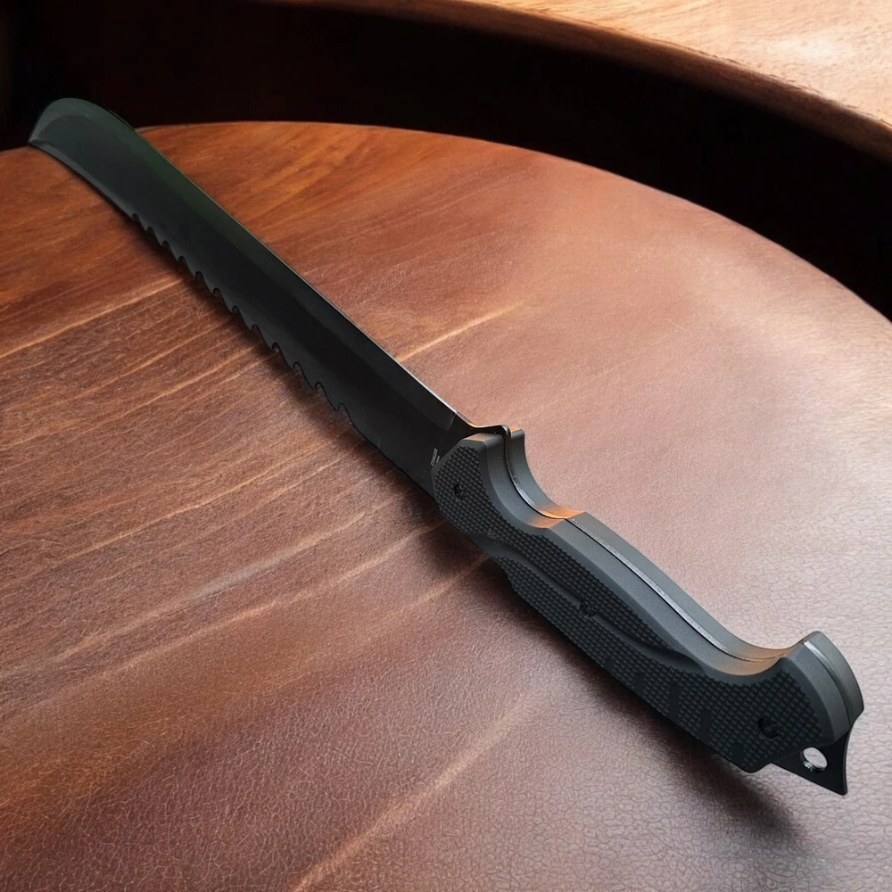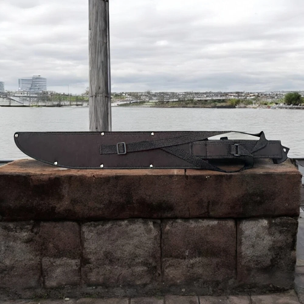 SZCO 25” Black Sawback Machete – Full Tang Survival Knife with Sheath This massive machete means business. With a menacing 25-inch full tang build and aggressive sawback spine, this SZCO survival blade is built for heavy-duty tasks — from field clearing to outdoor survival. A durable blacked-out finish, ergonomic grip, and included sheath make this a must-have for collectors, campers, and tactical users. Features: Total Length: 25 inches Blade Length: 18.25 inches Blade Style: Clip Point with Sawback Spine Blade Finish: Matte Black Handle: Textured Full Grip Polymer Tang: Full Tang Construction Includes: Nylon Tactical Sheath with Belt Loop Brand: SZCO Condition: Brand New Use: Survival | Camping | Hunting | Display | Collection 💥 Why You’ll Love It: Massive and intimidating with real functionality Sawback edge for light sawing/utility cuts Great balance for such a large profile Tactical and collectible — looks great on display Ships fast and secure 📦 What You Get: You will receive the exact machete shown in the photos, along with its fitted sheath. ⚠️ Buyer must be 18+ and follow all local, state, and federal laws regarding blade ownership.