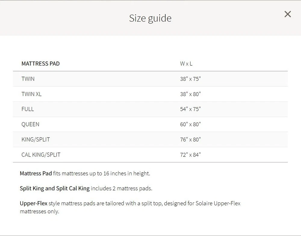 Features & Benefits Organic cotton helps to wick away moisture Organic cotton blend side panels with an extra-wide elastic band to keep the mattress pad in place Fits mattresses up to 16" high Ideal For Added protection against daily wear and tear and light stains Protecting your mattress investment Materials & Care Instructions Organic cotton 4% spandex, 96% organic cotton side panels Silicone elastic band Machine wash cold, gentle cycle, no bleach, tumble dry Certifications GOTS® certified organic cotton Fair Trade Certified