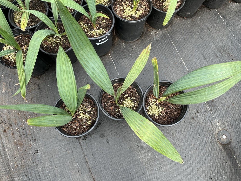 I’ve got a ton of these big 1 gallon Sabal minors. These are 4 year olds from seed, all starting to push out huge split leaves next. I’ve started potting them up to 3 gallon. Wanted to give everyone one last shot at getting them as 1 gallons. You will get 3 of these 1 gallon Sabal minors shipped in their pots in one box, for the price of 2!!!! Take advantage of this great summer special! These are really getting big now that the heat has kicked in. Almost watching these grow everyday in the greenhouse
