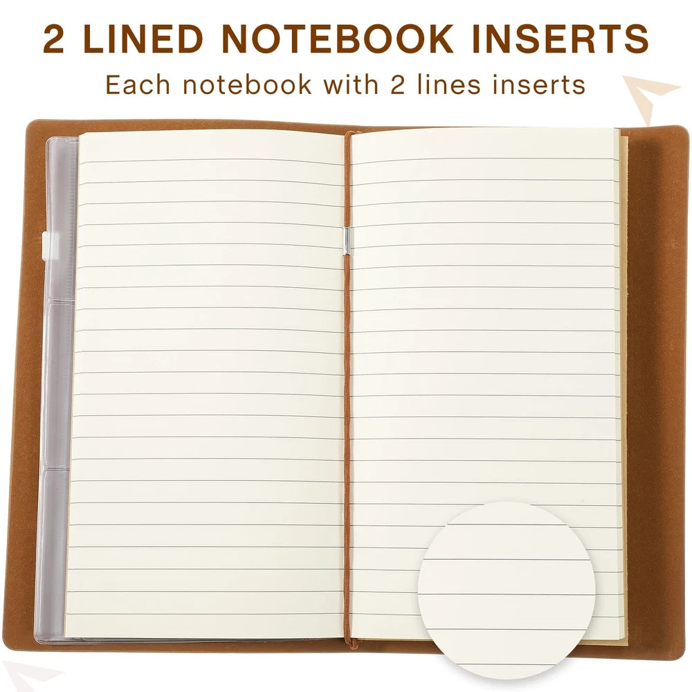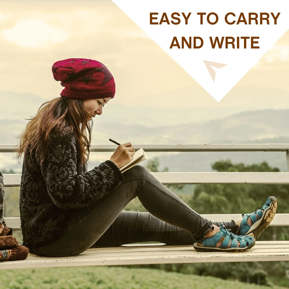 Sabary 8 Pack Vintage Travel Notebooks PU Leather Lined Journals Retro Refillable Travelers Writing Notebook and Card Holders for Men Women, 4.72 x 7.87 Inch, 80 Sheets/ 160 Pages Product Details Brand: Sabary Color: black, brown, light brown, white coffee Theme: Book Sheet Size: A4 Pages: 160 Cover Material: Faux Leather Style: Portable,Vintage Ruling Type: Plain Special Feature: Soft cover Number of Items: 8 Manufacturer: Sabary Brand: Sabary Item Weight: 3.99 pounds Package Dimensions: 11.14 x 8.35 x 3.19 inches Item model number: Sabary-Travel Notebooks-26 Color: black, brown, light brown, white coffee Cover Material: Faux Leather Number of Items: 8 Ruling: Plain Sheet Size: A4 Manufacturer Part Number: Sabary-Travel Notebooks-26 Date First Available: March 3, 2023 Package Includes: you will get 8 pieces of travel journal notebooks, each with 80 sheets, sufficient quantity can meet your different writing requirements; Come in 4 different colors, including black, brown, light brown, white coffee, you can choose the one according to the mood of the day Portable Size: the size of the vintage travel notebook is about 20 x 12 cm/ 4.72 x 7.87 inches, portable but provides enough space to write your notes; You can put them in your pocket or backpack, and record the unforgettable memories of your journey anytime and anywhere Reliable Material: the cover of refillable journals are made of quality PU leather material, which can protect the inside from chamfer or scratch; The inner pages are smooth and soft, which can help your writing more smoothly, bring you a comfortable writing experience Refillable Insert: these small travel journal notepads are designed with the elastic band around the outside, it will make the cover and inner page better connected together; Comes with a 3 grid card holders and PVC zipper pocket, so you can put your business card, photo or other small things inside, they are useful and interesting Considerate Gifts: these retro leather notebooks are helpers in your journey and life; You can use them to record your travel notes, write thoughts, draw manuscripts or plan your schedule; Or treat as a considerate gift to your family, colleagues, friends, to show your love and improving your relations